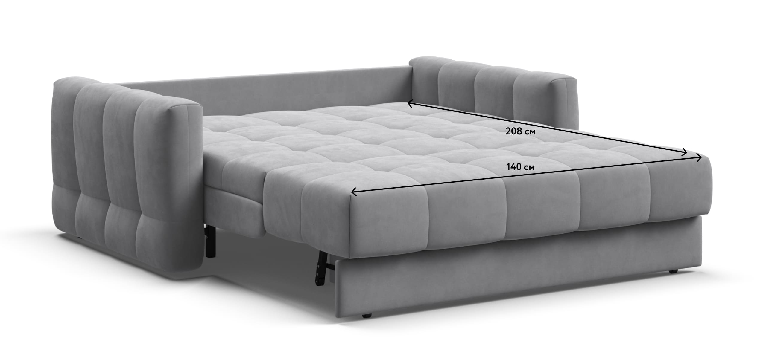 В разложенном виде имеет большое, ровное спальное место для сна, без стыков и перепадов с березовыми ламелями в основании - как кровать