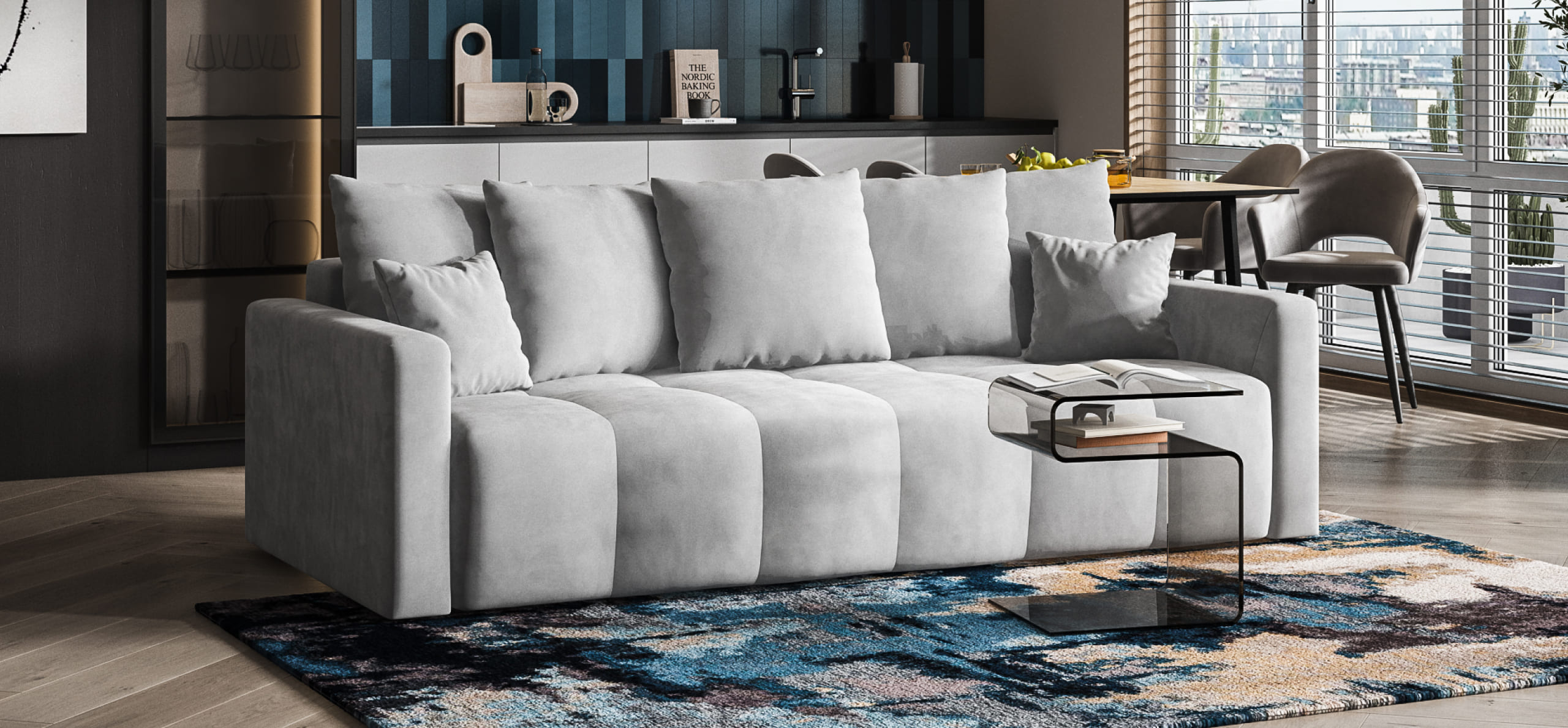 Простой и надежный механизм еврокнижка позволяет ставить диван вплотную к стене