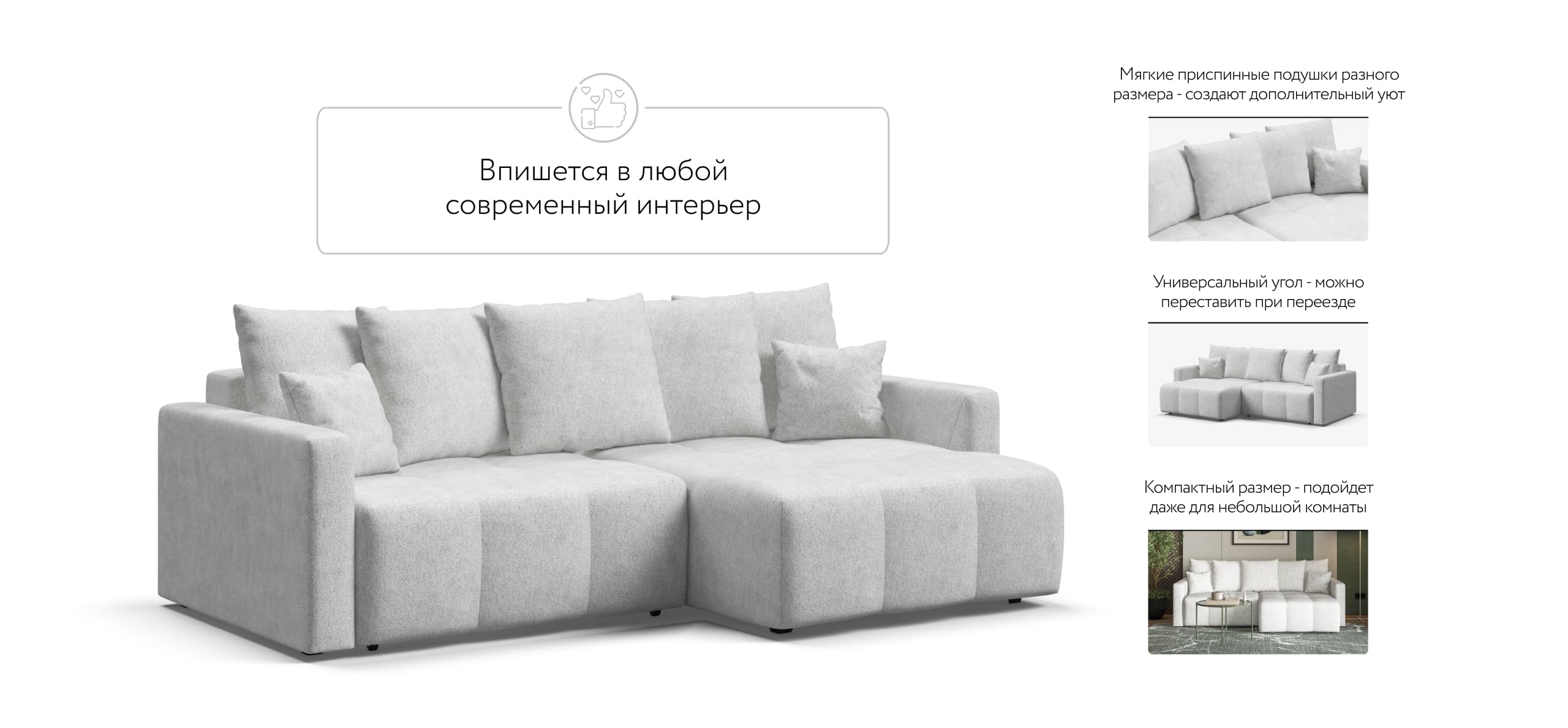 Угловой диван BOSS TREND Шенилл CLOUD милк