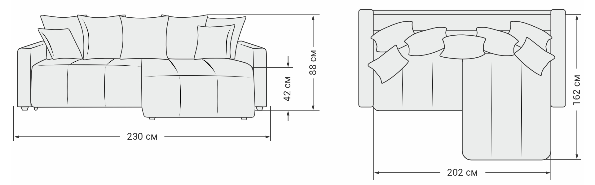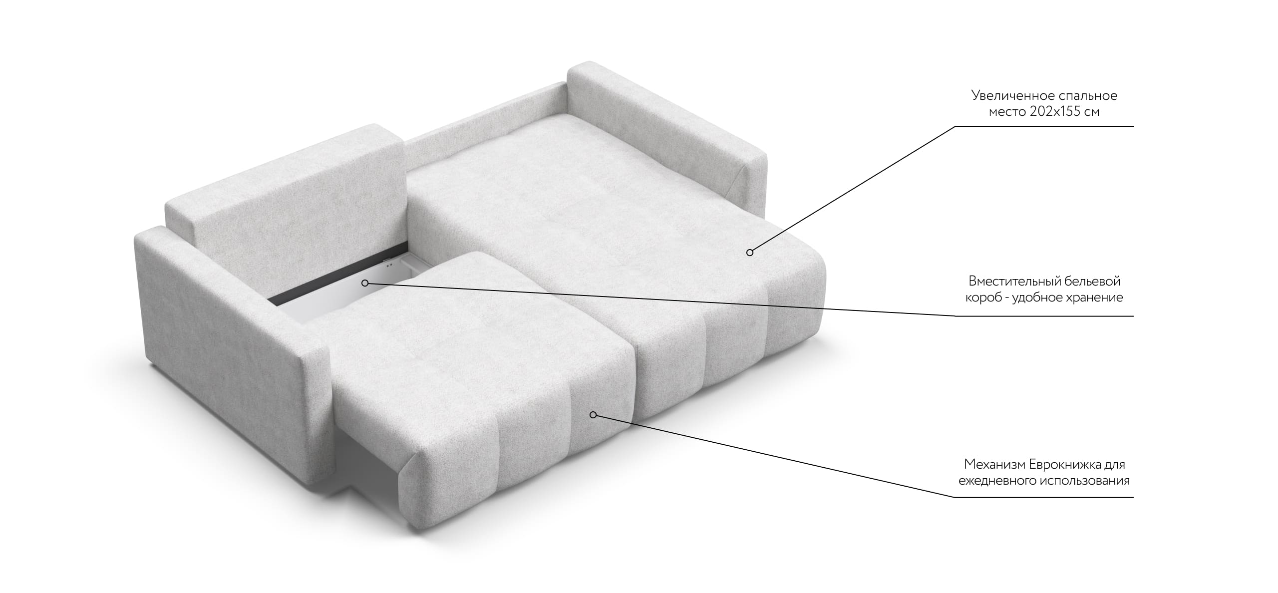 Широкая оттоманка BOSS Loveseat - с комфортом разместит двух человек. Независимый пружинный блок в основании и механизм еврокнижка превращают диван в комфортное спальное место с анатомическим эффектом.