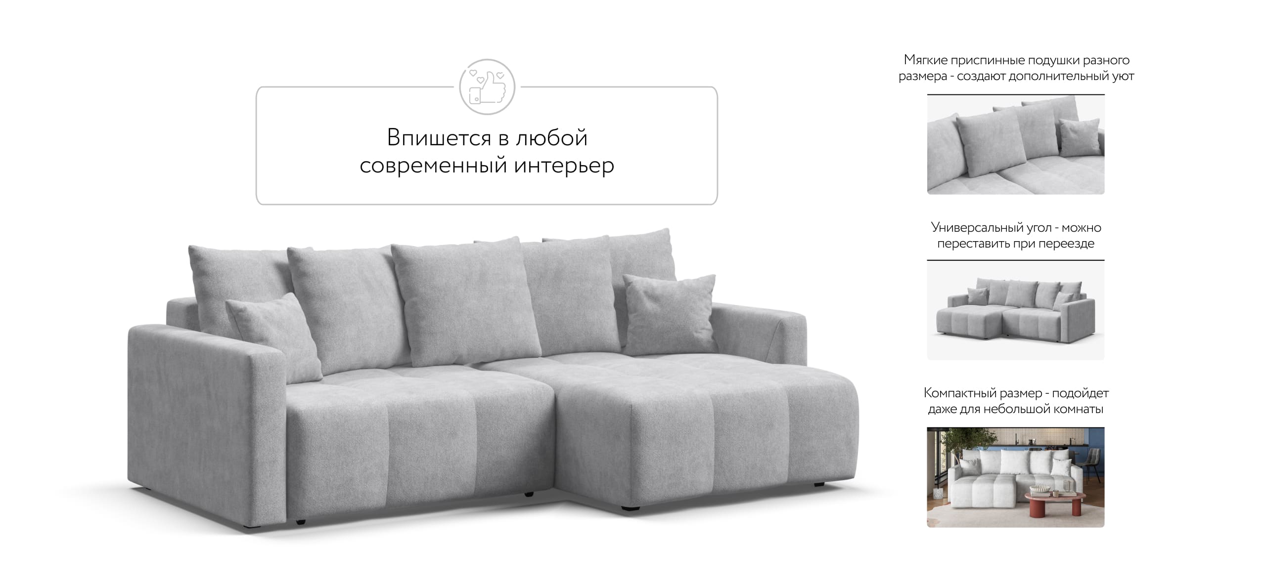 Мягкие приспинные подушки разного размера обеспечивают комфорт во время отдыха и создают дополнительный уют