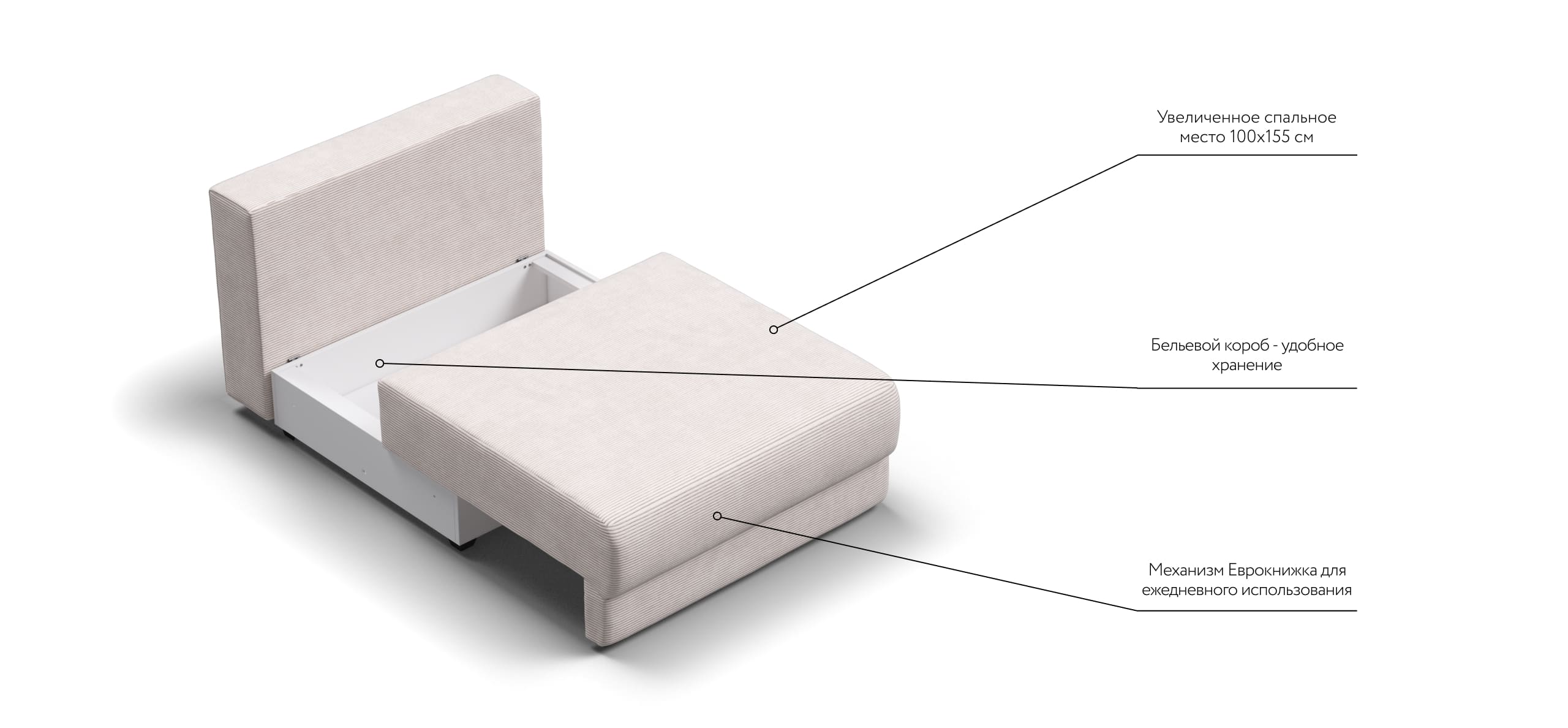 Простой и надежный механизм еврокнижка с легкостью превратит модульную систему в комфортное спальное место.