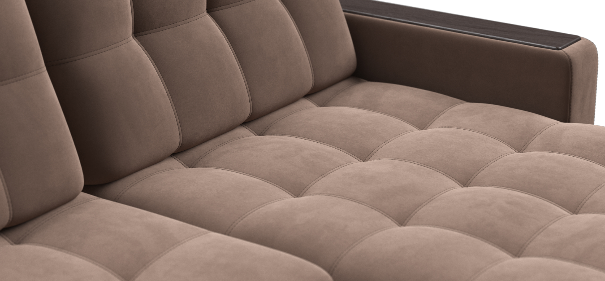 Каждое посадочное место выдвигается вперед и можно получить диван с правым или левым углом, а также получить П-образную форму дивана.