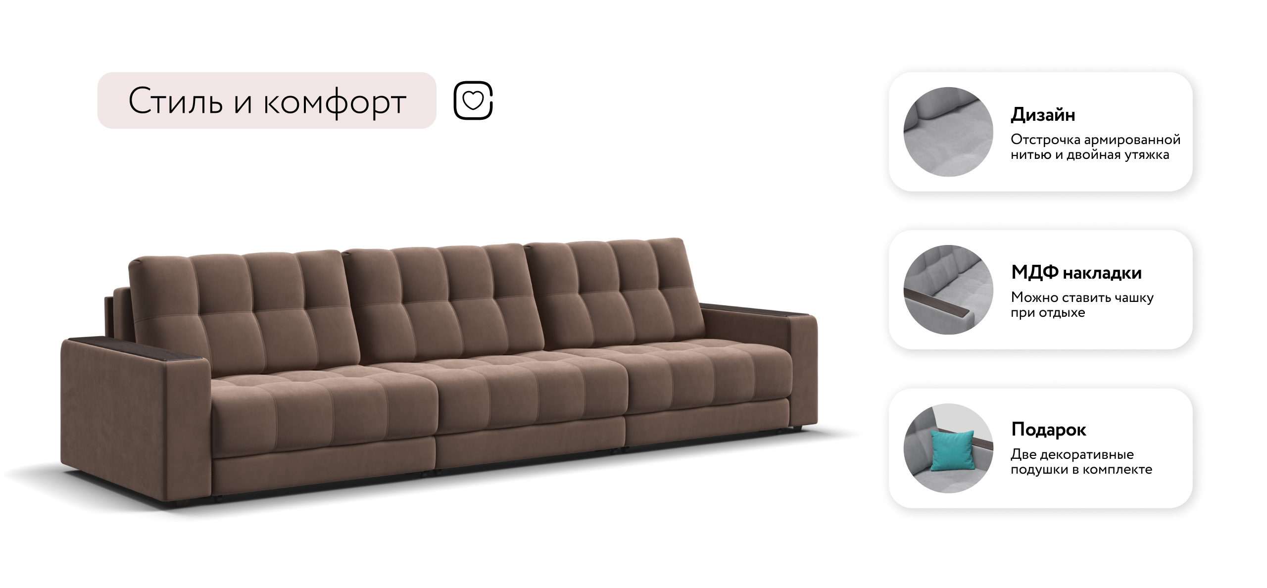 Новый диван стал центром нашей гостиной. Велюровая обивка удивительно мягкая и приятная на ощупь, что добавляет дополнительный комфорт в использовании. К тому же, диван отличается стильным дизайном, который отлично вписывается в современный интерьер. С его помощью пространство стало более уютным и привлекательным.