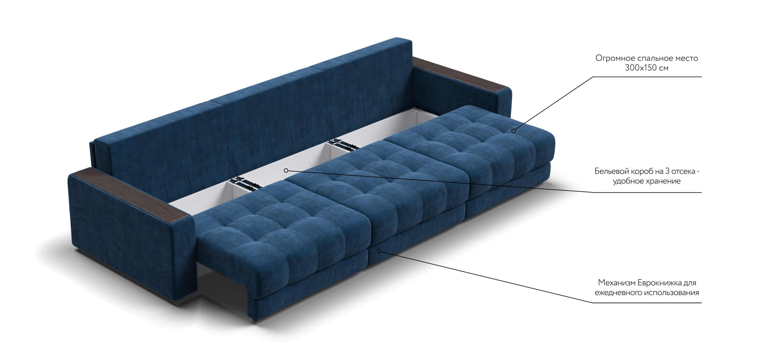Простой и надежный механизм еврокнижка позволяет ставить диван вплотную к стене.