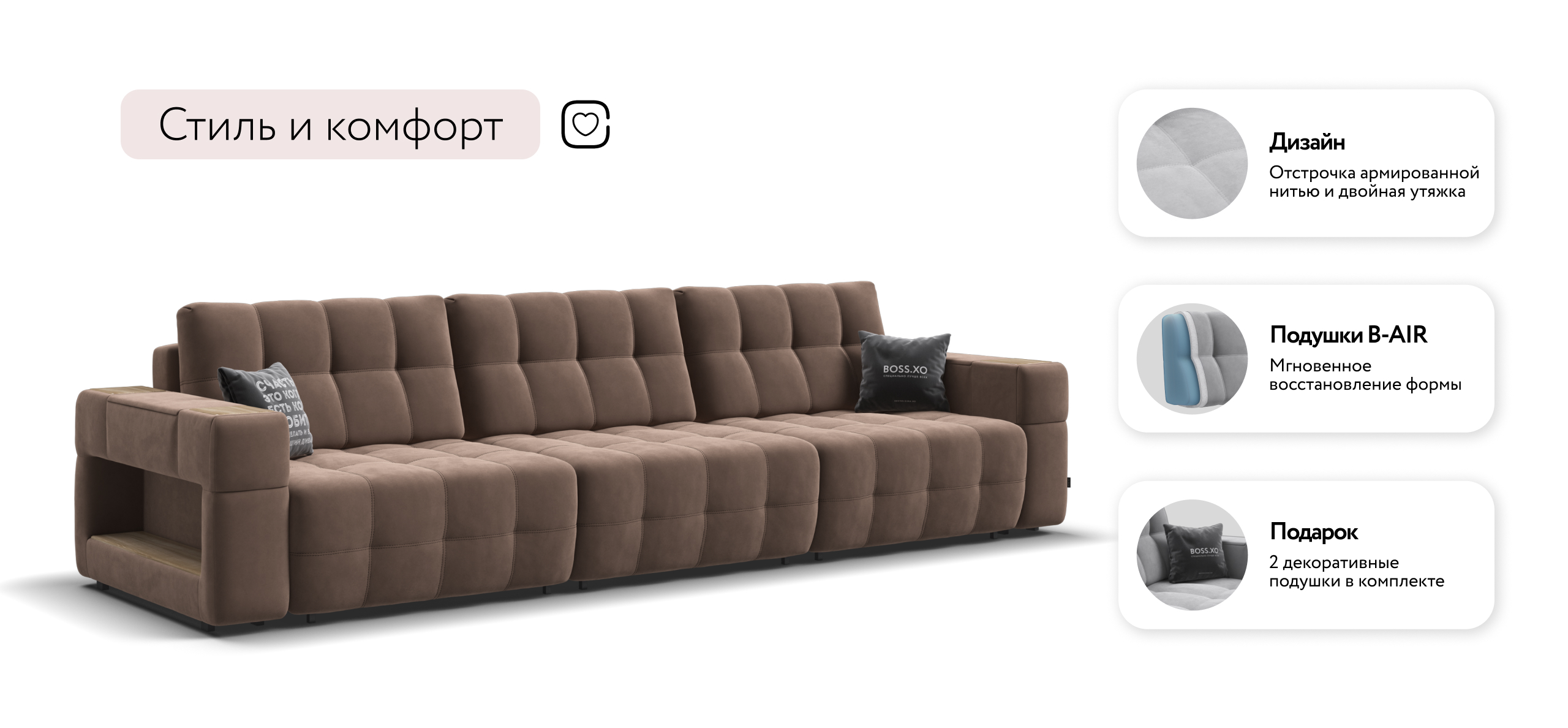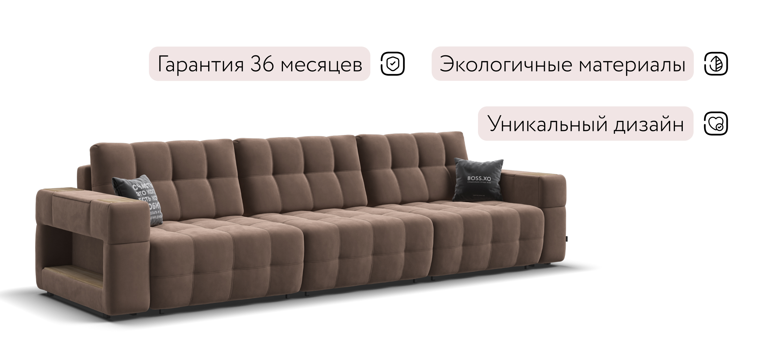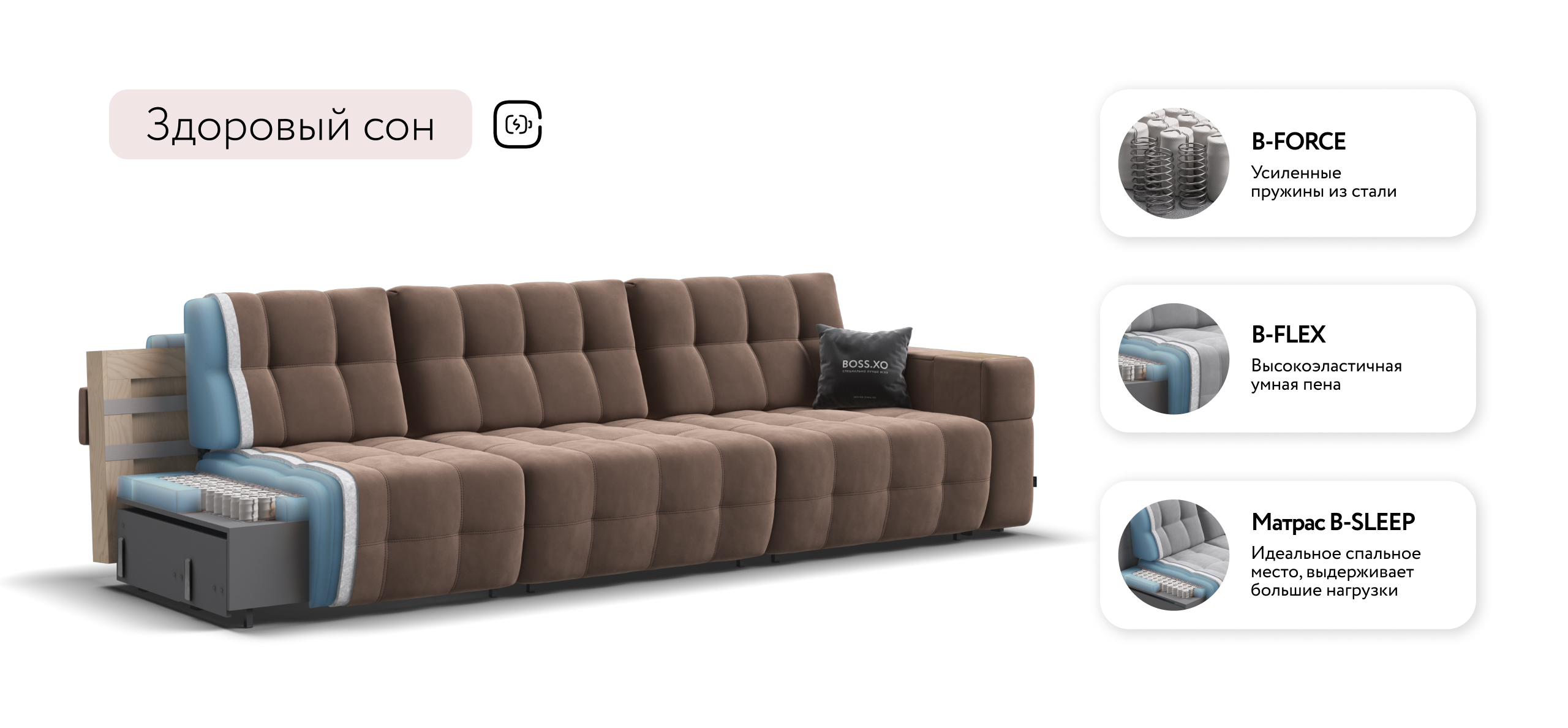 С гордостью представляем новый диван BOSS.XO MAX, разработанный специально для красоты, комфорта и радости в Вашем доме. Это не просто диван - в нём десятки новых функций, которые сделали его центром притяжения для всей Семьи.