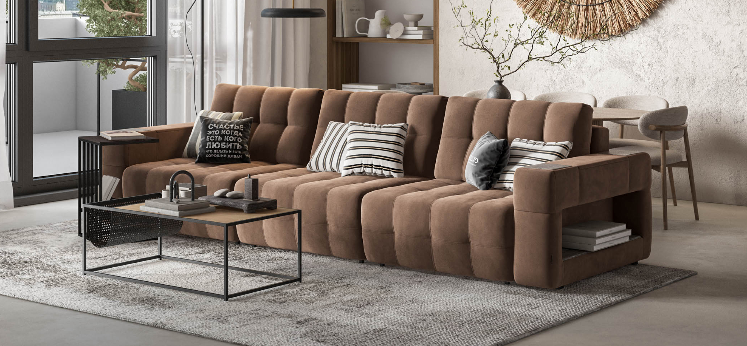 Диван BOSS.XO MAX велюр Monolit мокко / WOOD Smok