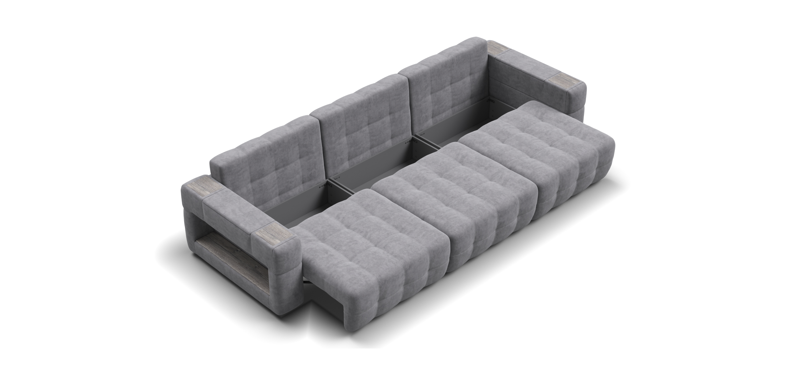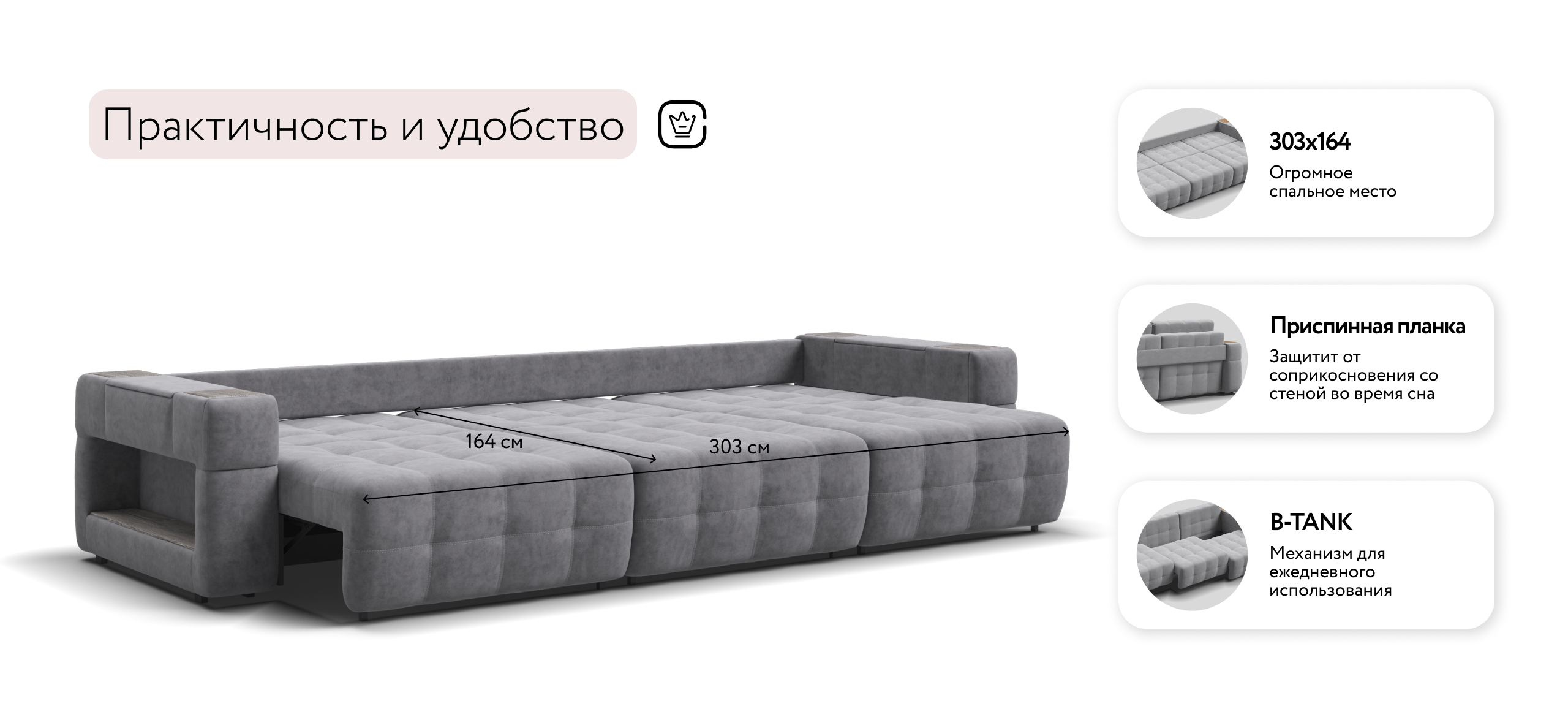 BOSS.XO MAX - это и прямой, угловой и П-образный диван сразу, за 10 секунд вы можете превратить его в правый или левый угол, а также в П-образный.