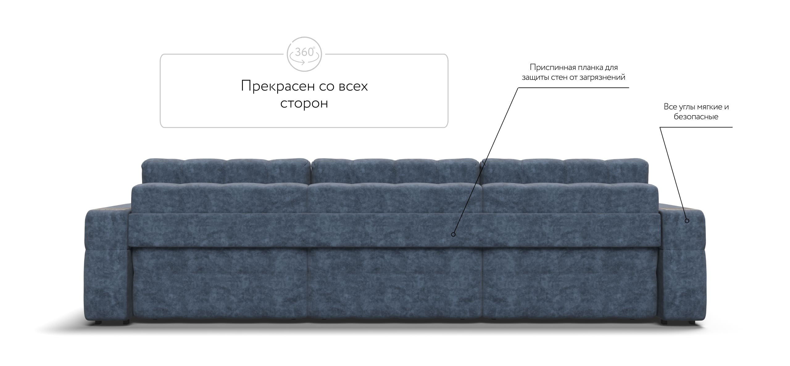 Дизайн 360° – диван прекрасен со всех сторон. Приспинная планка обеспечивает защиту стены от загрязнений и истирания.