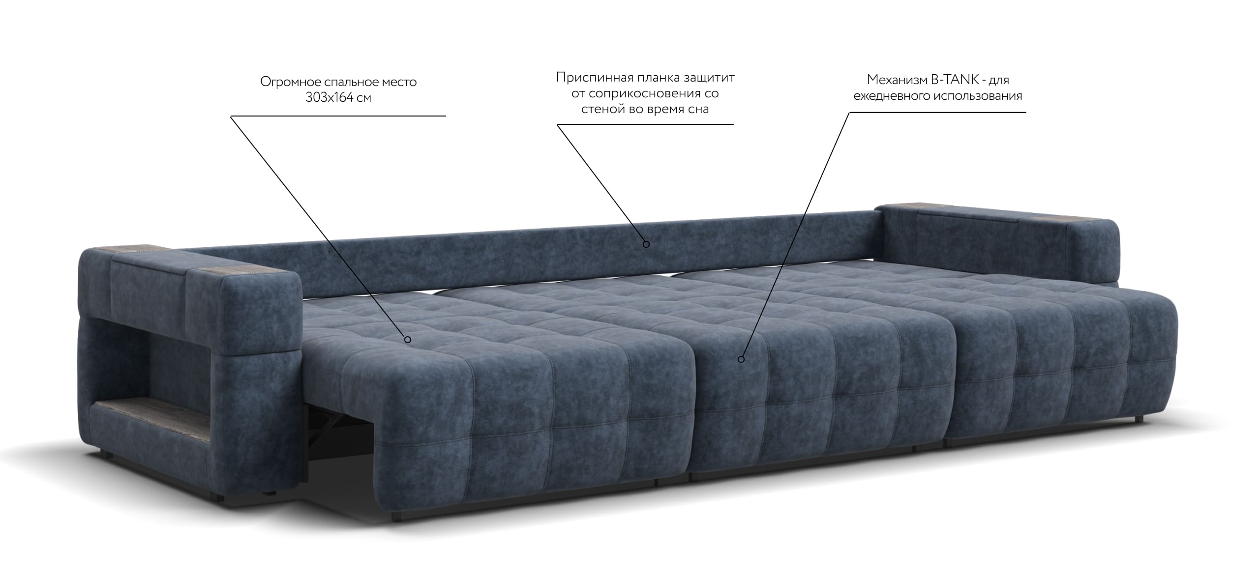 BOSS.XO MAX - это и прямой, угловой и П-образный диван сразу, за 10 секунд вы можете превратить его в правый или левый угол, а также в П-образный.