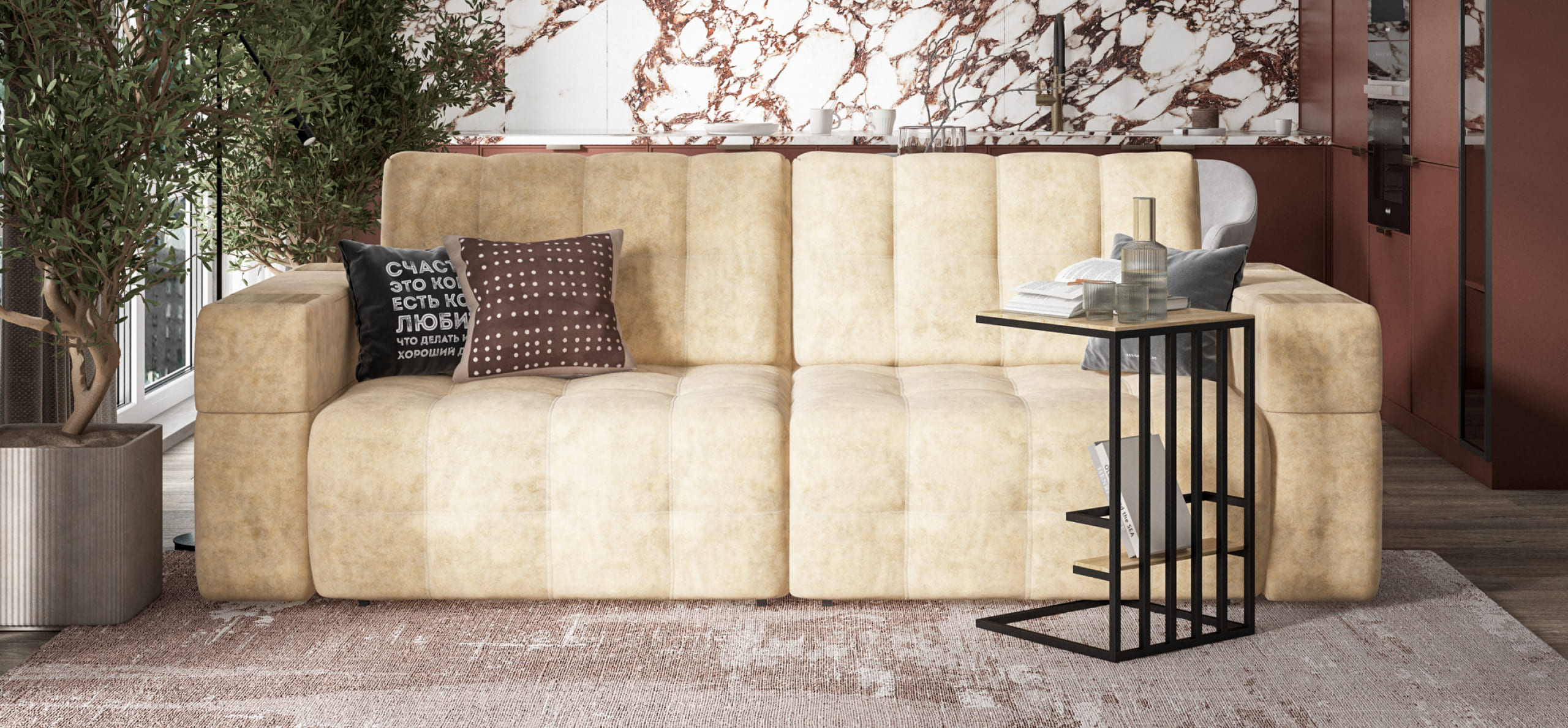 Декоративная строчка армированной нитью и двойная утяжка надолго сохранит внешний вид дивана.