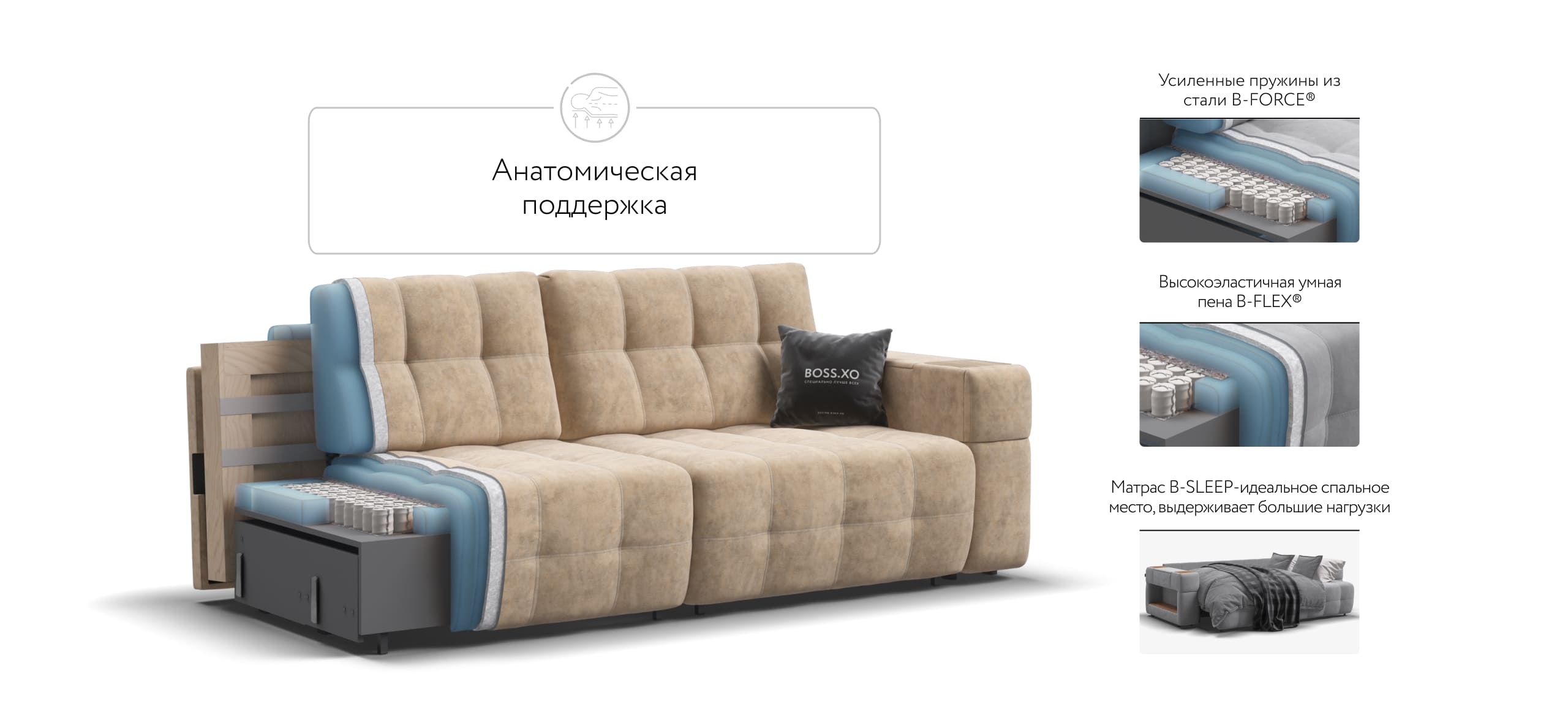 BOSS.XO по своим характеристикам лучше многих диванов с ценой от 300 тысяч рублей.