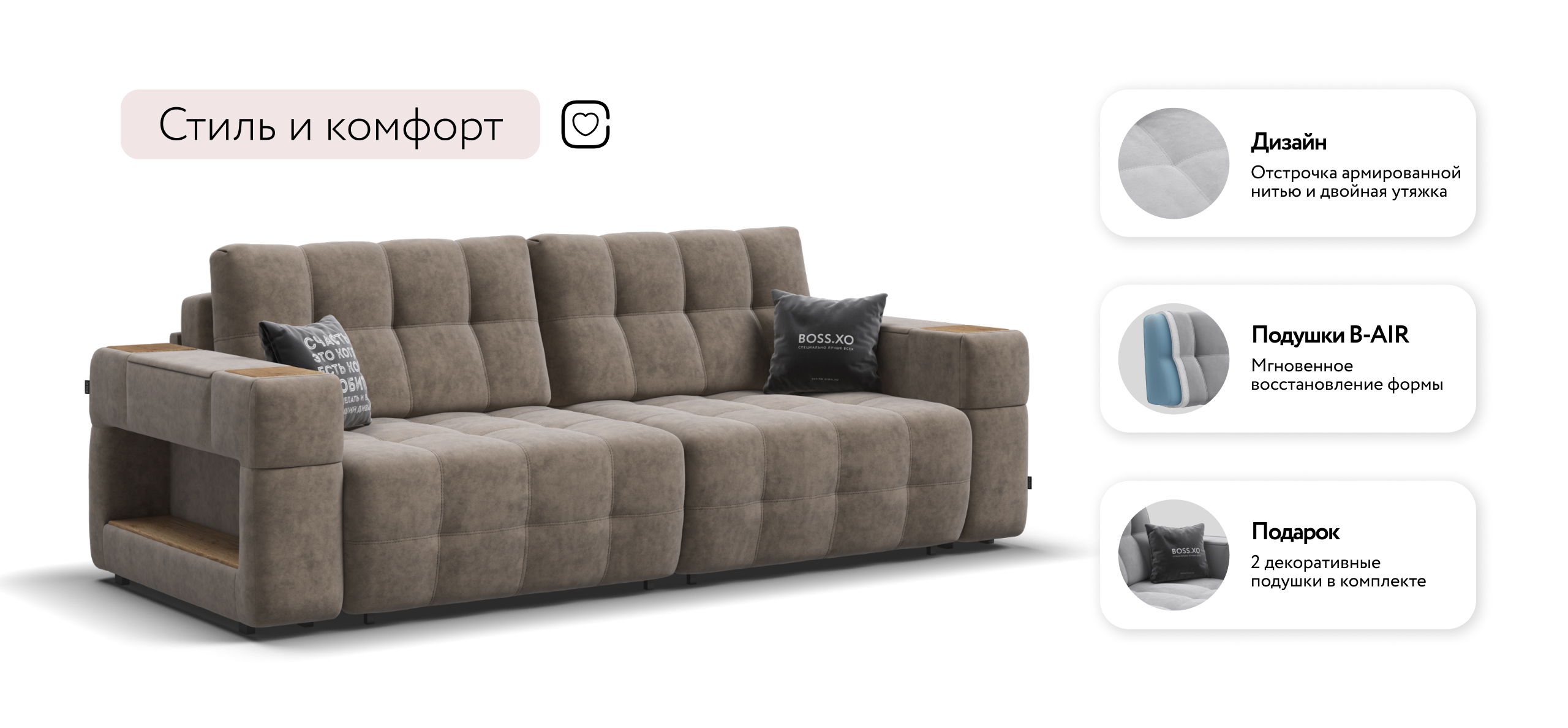 С гордостью представляем новый диван BOSS.XO, разработанный специально для красоты, комфорта и радости в Вашем доме. Это не просто диван - в нём десятки новых функций, которые сделали его центром притяжения для всей Семьи.