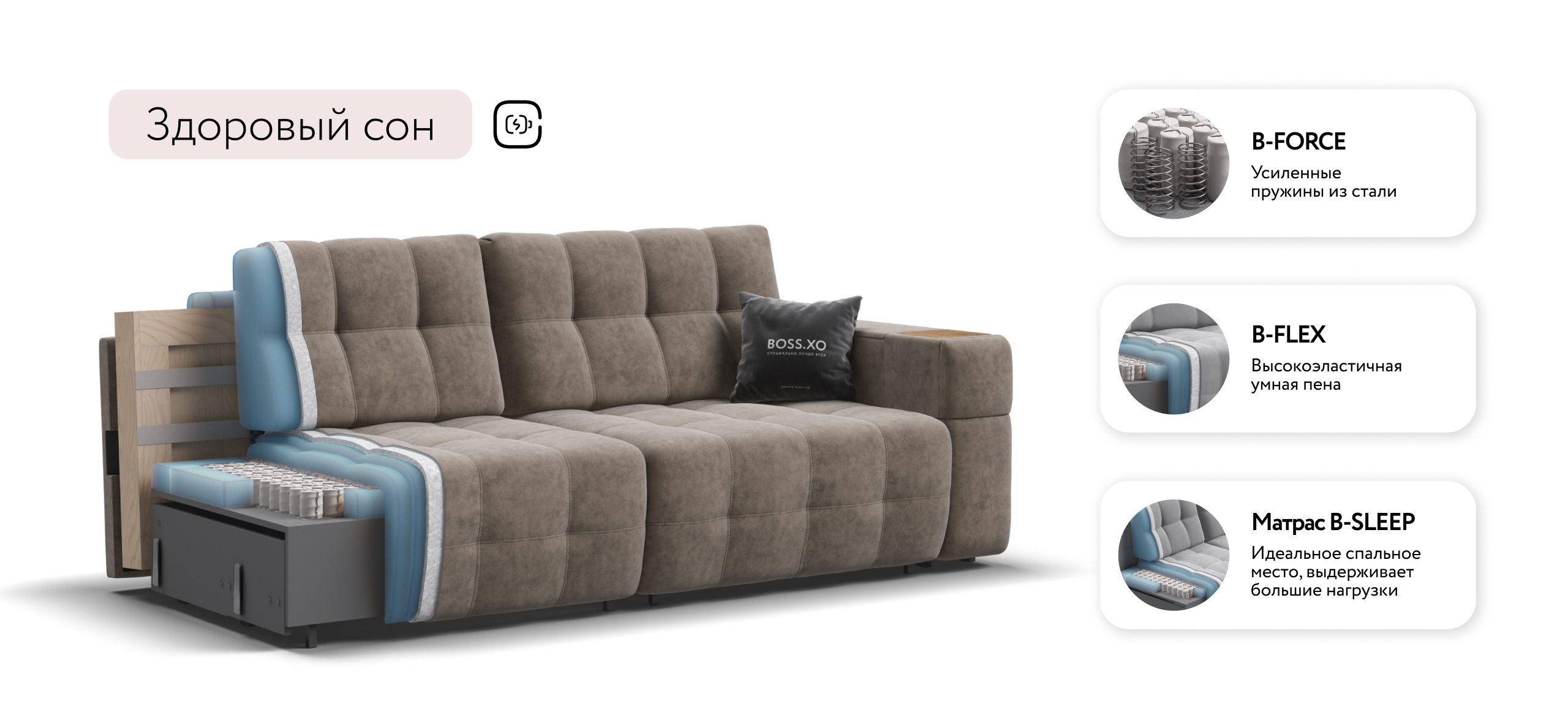 BOSS.XO по своим характеристикам лучше многих диванов с ценой от 300 тысяч рублей.