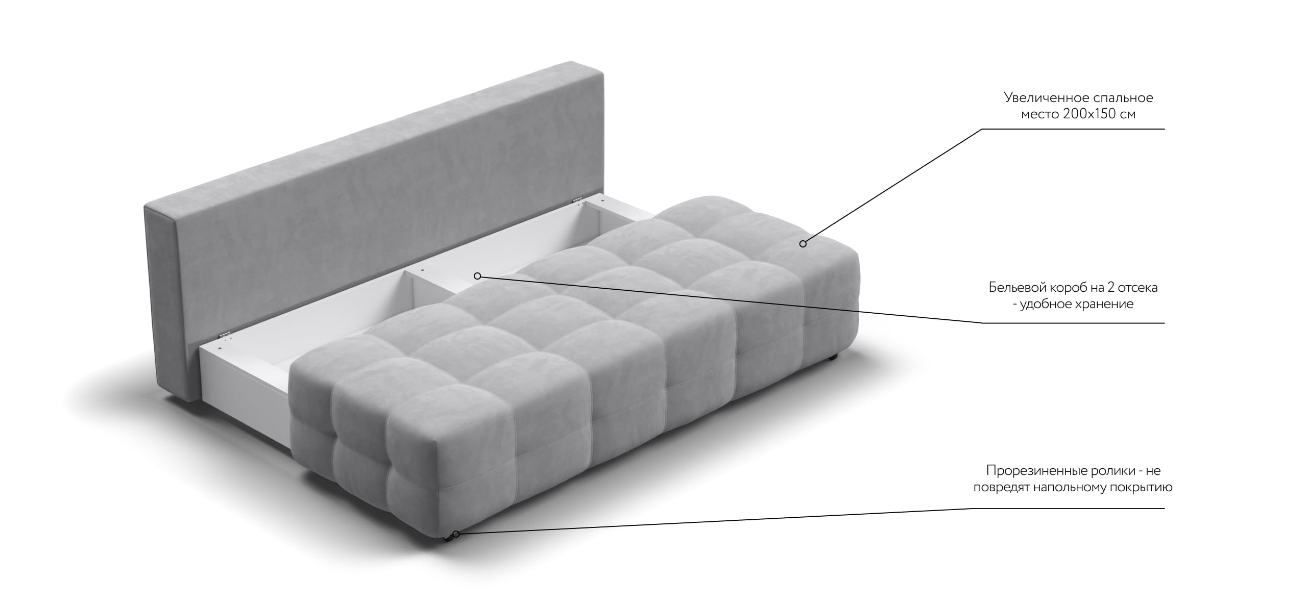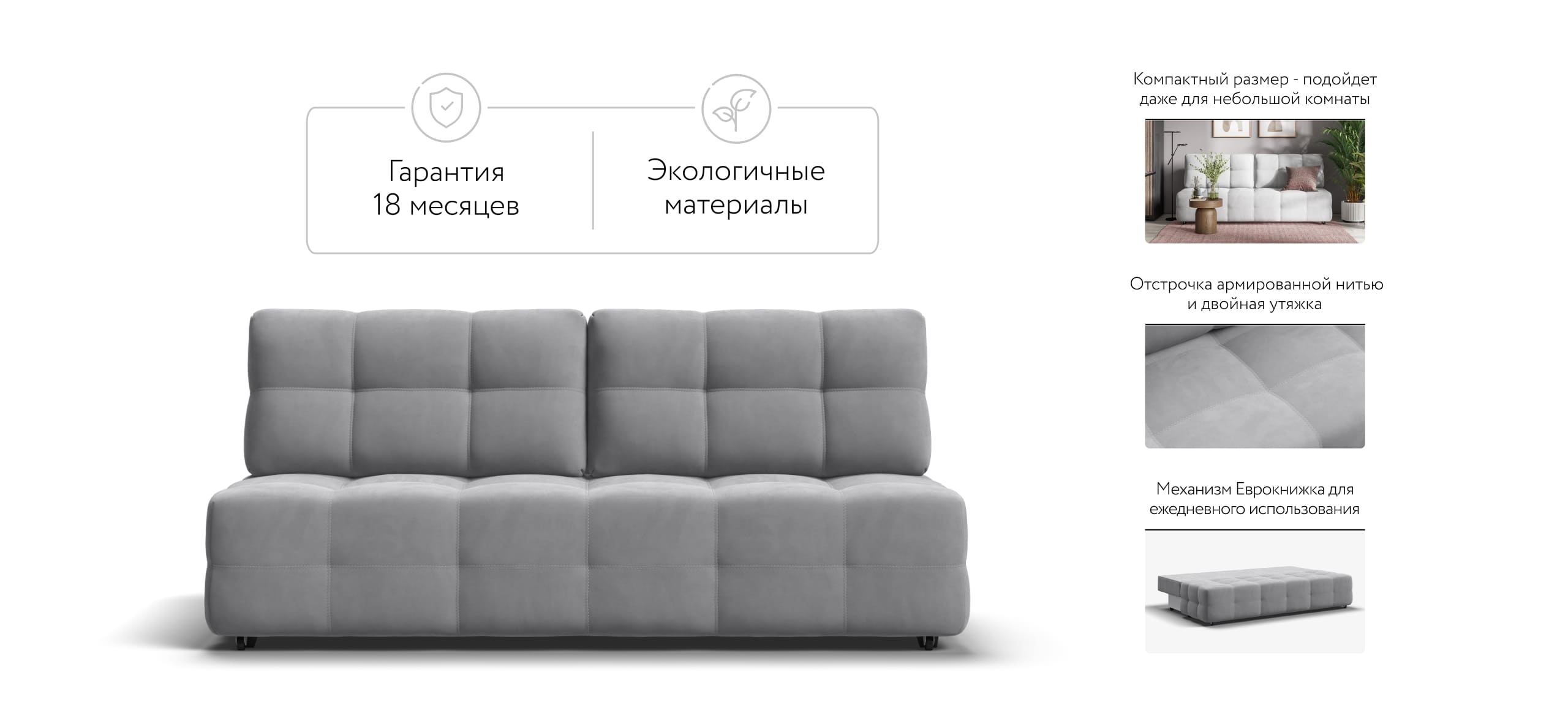 Благодаря строгому и лаконичному образу диван Dandy MINI будет уместен в любом интерьере. Удобный механизм трансформации позволяет с легкостью раскладывать диван в удобную, полноценную, двуспальную кровать.