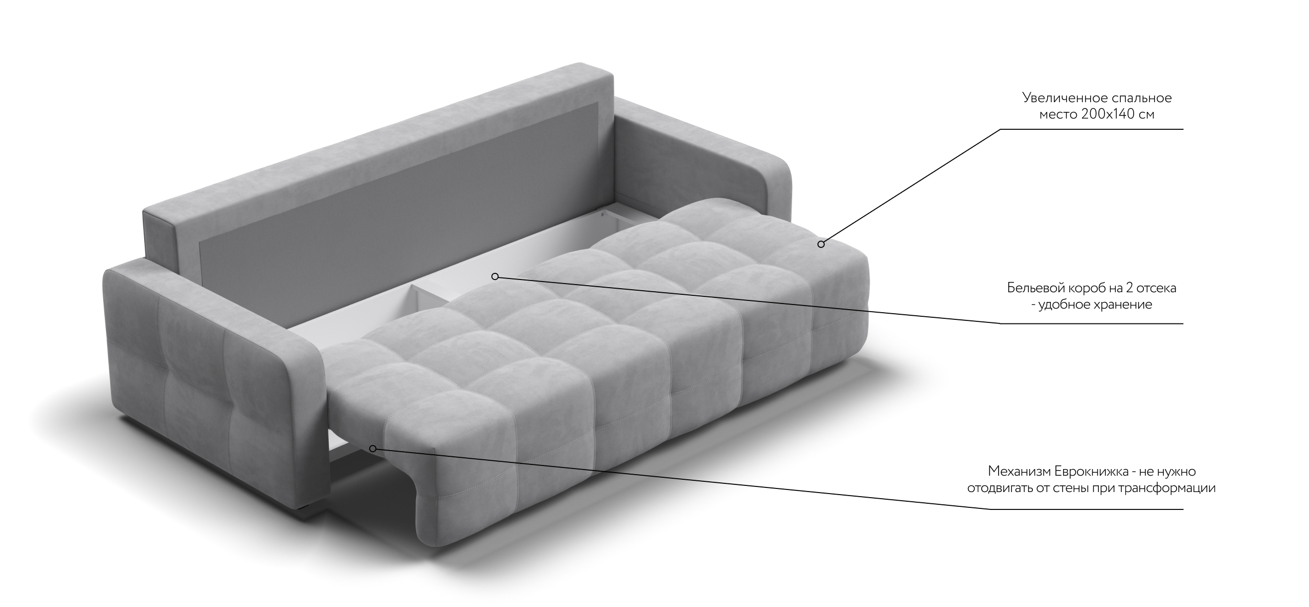 Диван Денди- с ним так легко создать настоящий уют и домашний комфорт. Мягкие приспинные подушки и независимый пружинный блок в основании обеспечат максимальный комфорт во время отдыха. Простой и надежный механизм трансформации еврокнижка позволяет с легкостью раскладывать диван в удобную, полноценную, двуспальную кровать с идеально ровным спальным местом.
