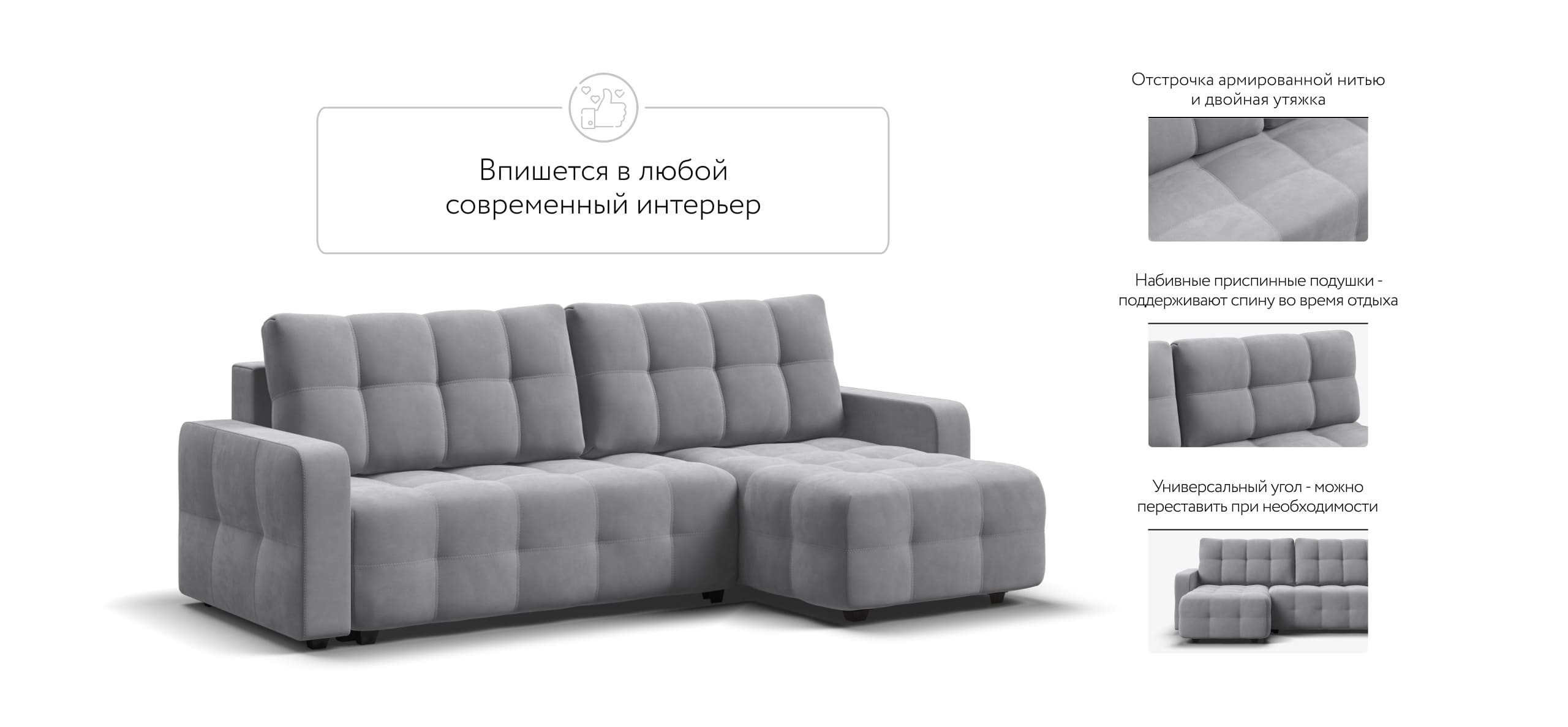 Угловой диван Dandy euro SE велюр Monolit сталь