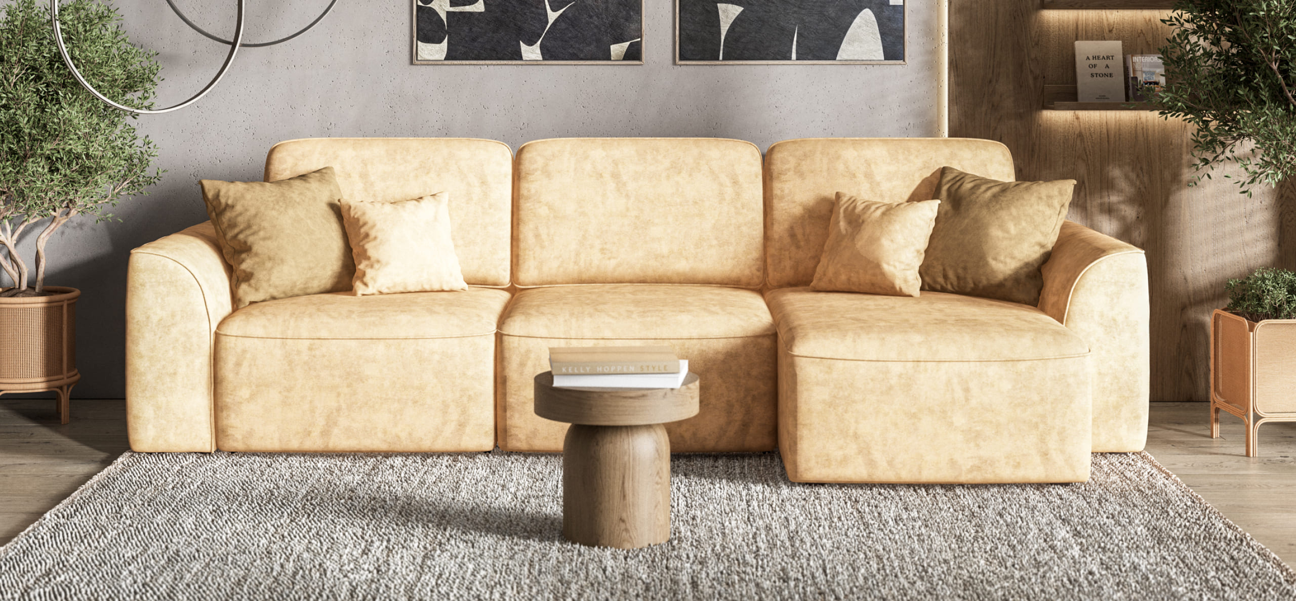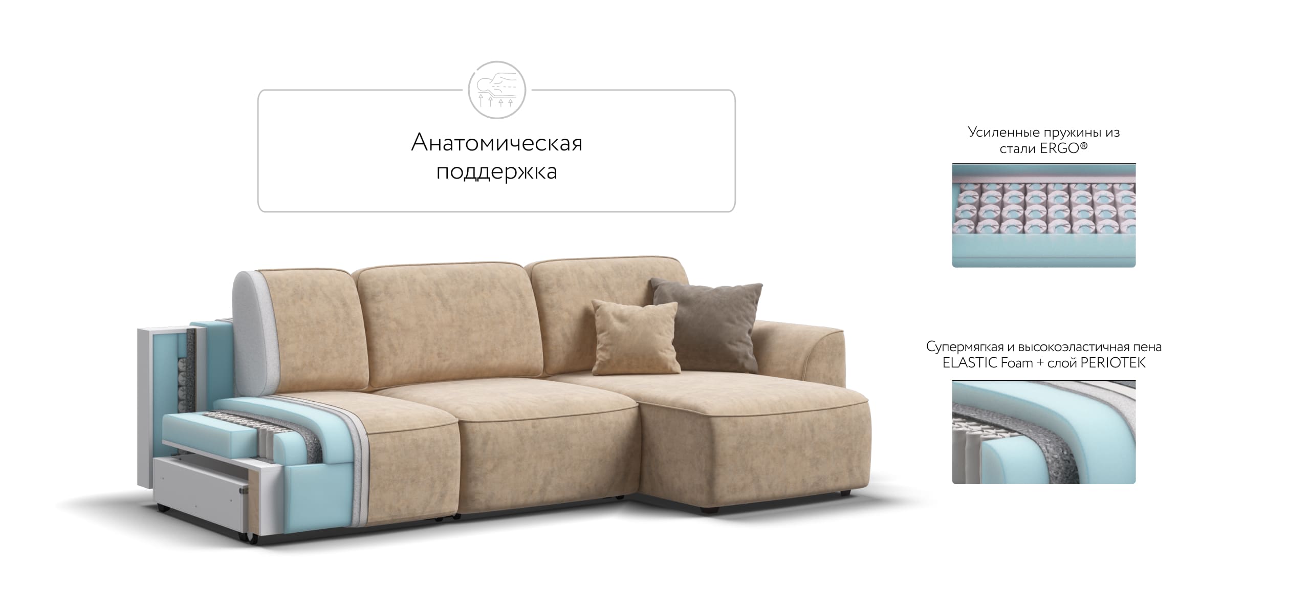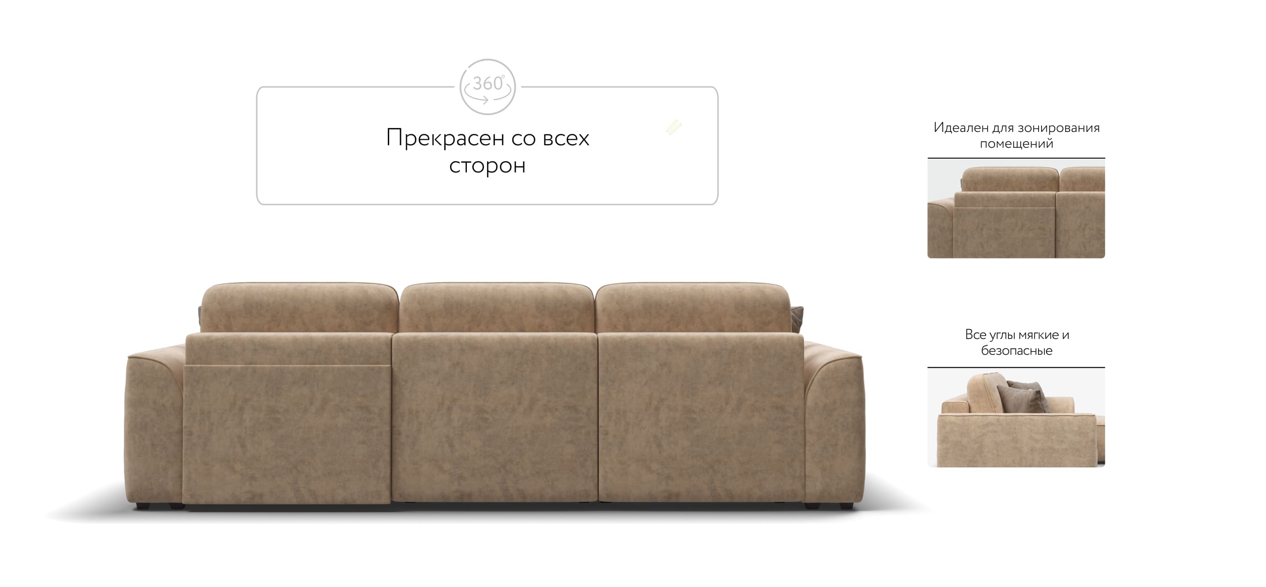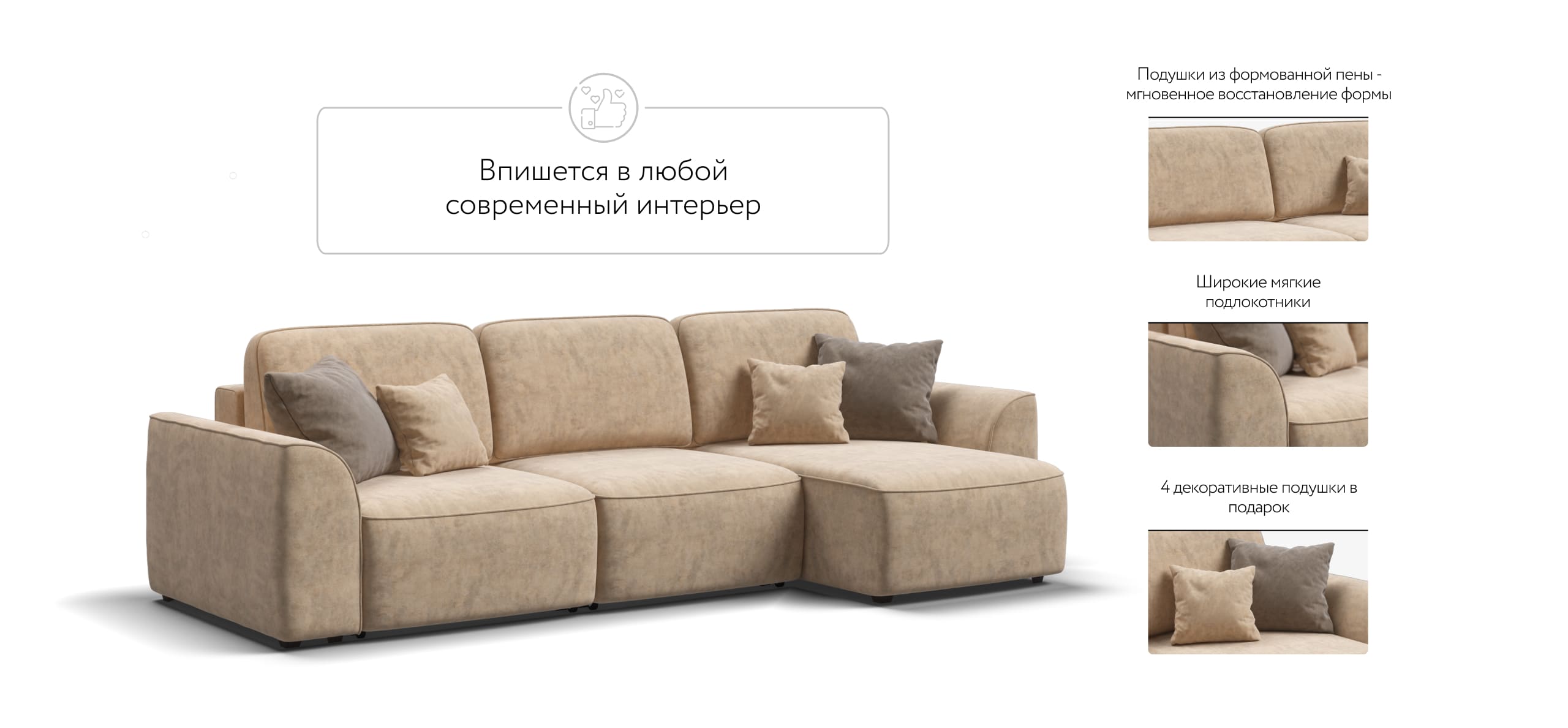 Комфортная посадка, скругленные линии, объемные подушки - диван, который наполнит ваш дом уютом и комфортом. Универсальный угол позволит Вам самостоятельно выбрать его положение при сборке, а каждое посадочное место можно выдвинуть вперед и получить П-образную форму дивана, на котором с комфортом разместится большая компания. А в разложенном виде диван превращается в комфортное спальное место.