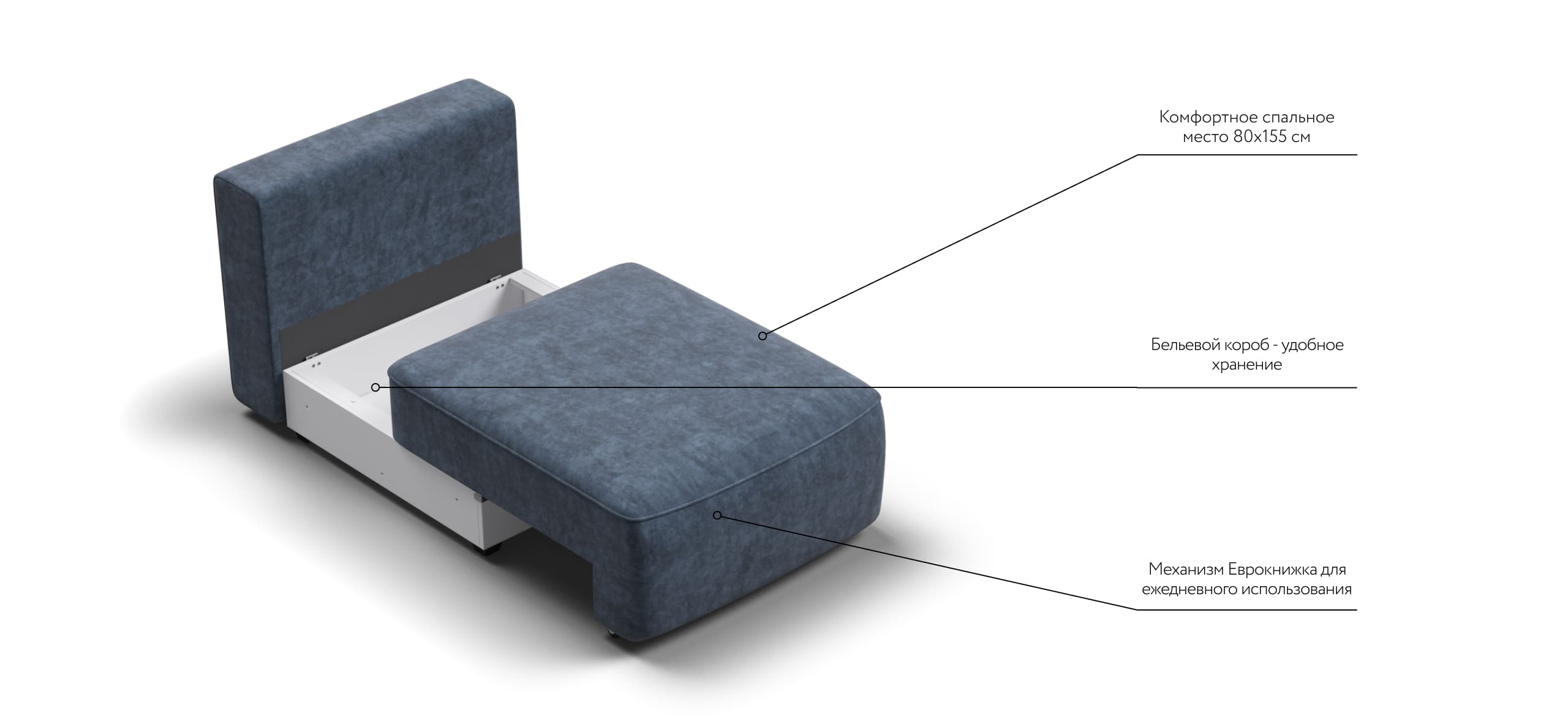 Благодаря простому и надежному механизму еврокнижка модульная система с легкостью превратится в комфортное спальное место.