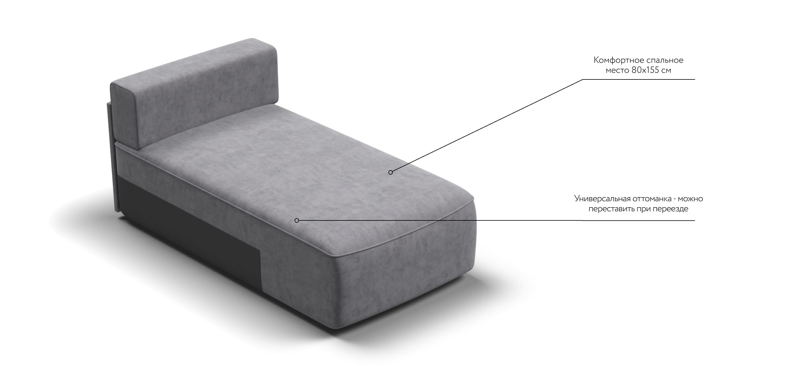 Оттоманка KING MODOOL является частью модульной системы. Оттоманка универсальная и может быть установлена с любой стороны модульной системы. Мягкие подушки из формованной пены и высокоэластичная пена ELASTIC Foam с дополнительным слоем PERIOTEK создадут максимальный комфорт во время отдыха. Благодаря глубокой посадке шезлонга 110см, можно отдыхать полулежа не раскладывая диван