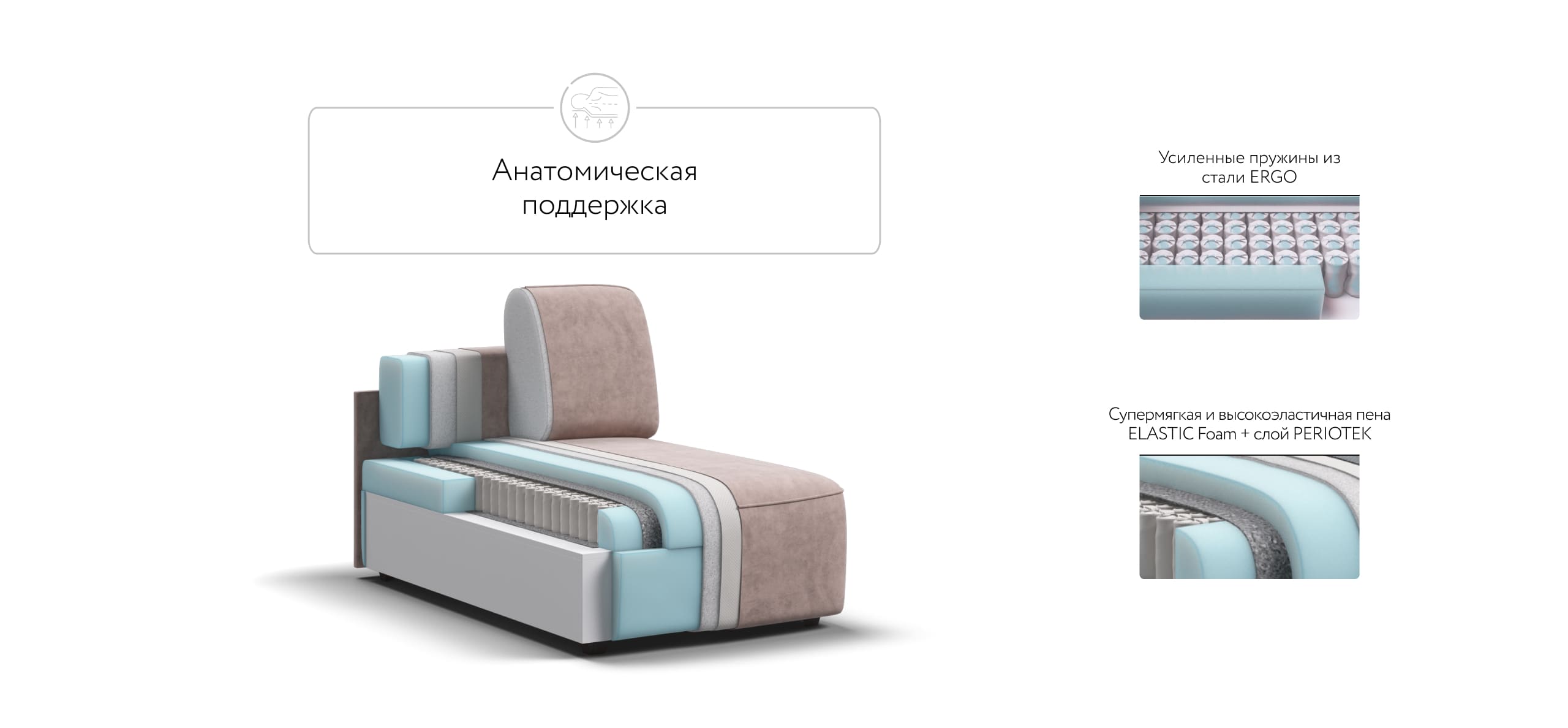 Высокоэластичная пена ELASTIC Foam быстро восстанавливает форму, а Слой PERIOTEK придаёт пышность и упругость