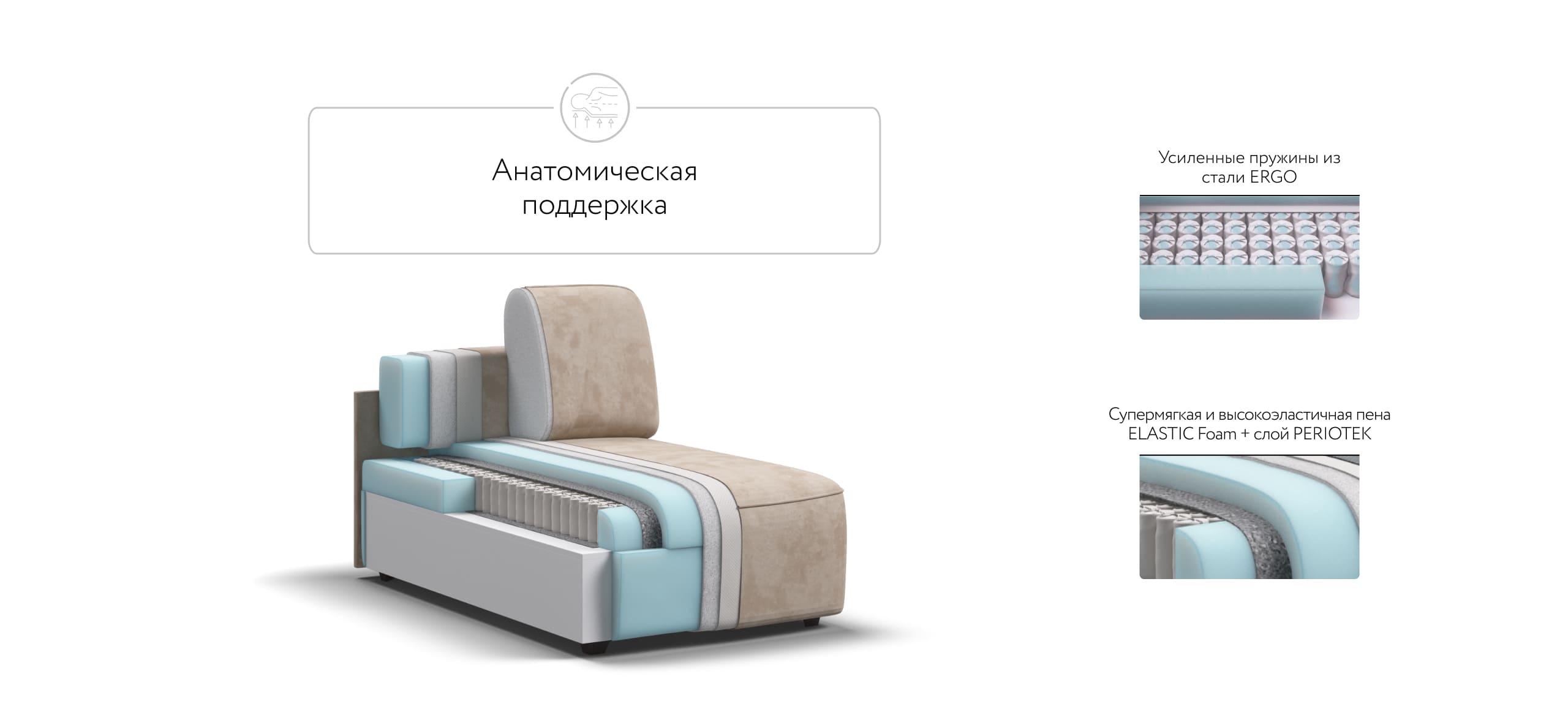 Оттоманка KING MODOOL является частью модульной системы. Оттоманка универсальная и может быть установлена с любой стороны модульной системы. Мягкие подушки из формованной пены и высокоэластичная пена ELASTIC Foam с дополнительным слоем PERIOTEK создадут максимальный комфорт во время отдыха. Благодаря глубокой посадке шезлонга 110см, можно отдыхать полулежа не раскладывая диван