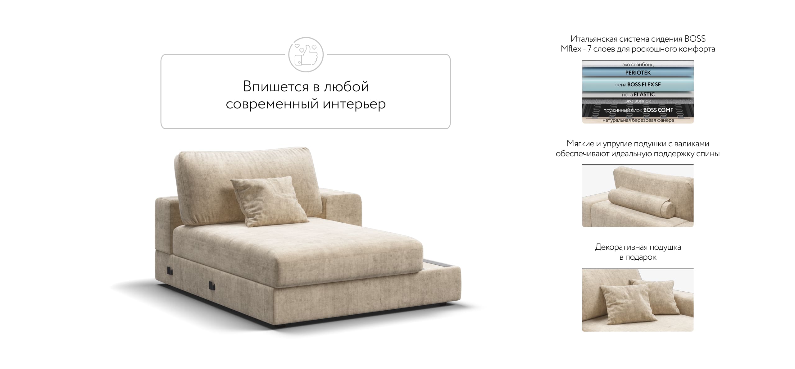 BOSS MODOOL SE оттоманка правая шенилл Gloss беж