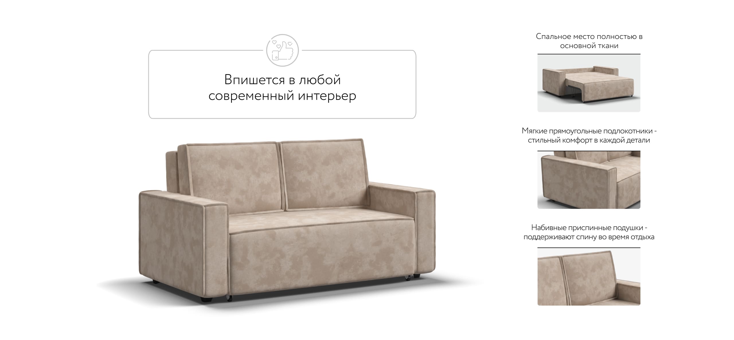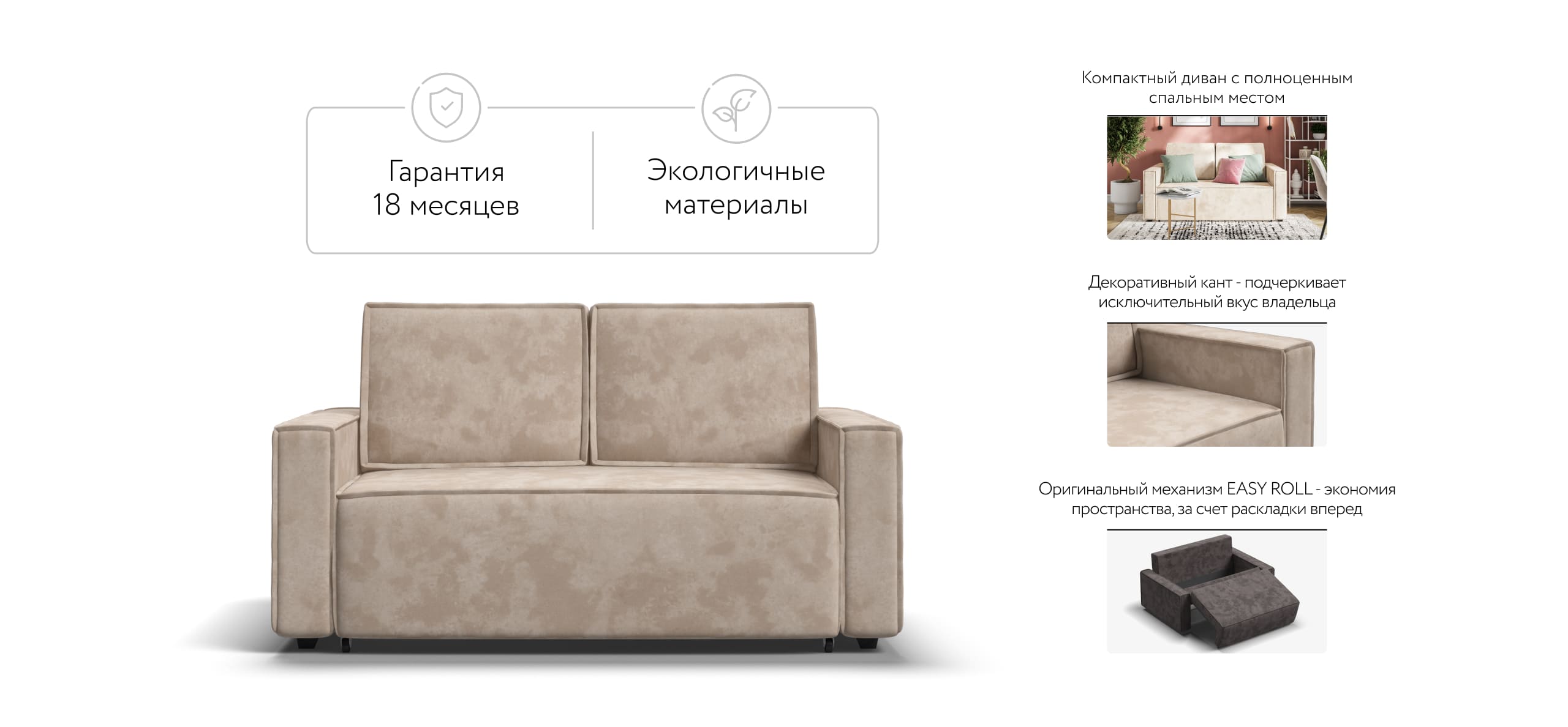 NORD Compact компактный диван с механизмом EASY ROLL. Несмотря на небольшие габариты, модель оснащена оптимальным спальным местом, на котором могут с комфортом разместиться 2 человека. Мягкие подлокотники, строгая симметрия и минималистичная отделка идеально дополнит современный интерьер в стиле лофт.