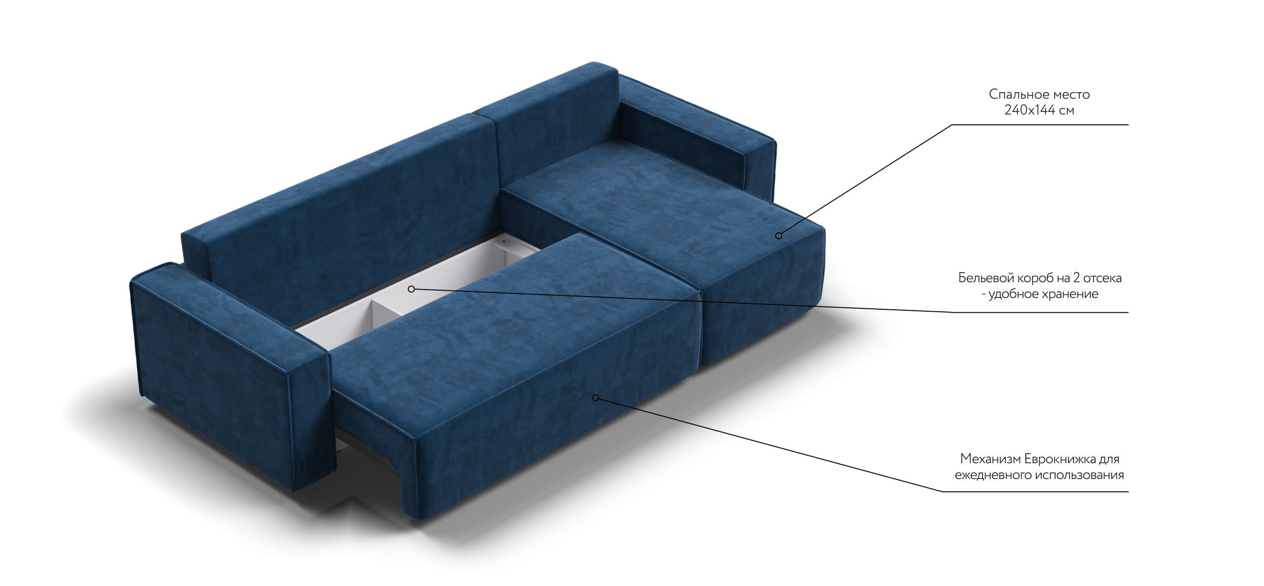Угловой диван NORD 2.0 Велюр Monolit синий