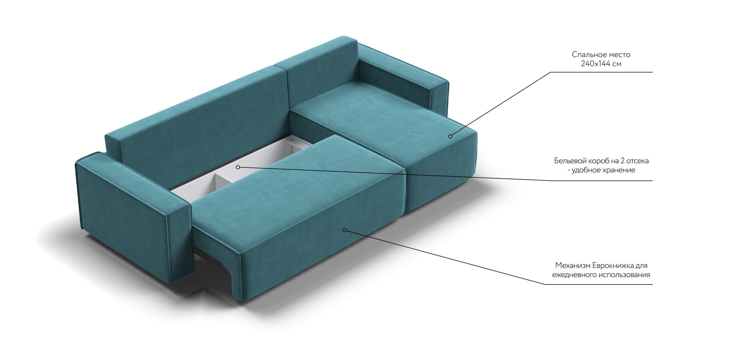 Угловой диван NORD 2.0 с мягкими широкими подлокотниками, строгой симметрией и минималистичной отделкой идеально дополнит современный интерьер в стиле лофт. Днем Вы с комфортом сможете провести время за просмотром любимого фильма, а ночью трансформировать диван в полноценное спальное место, благодаря анатомическому матрасу и надежному механизму еврокнижка. Диван имеет дизайн 360, что позволит расположить его в любой части гостиной. Универсальный угол позволит Вам самостоятельно определить положение угла при сборке.