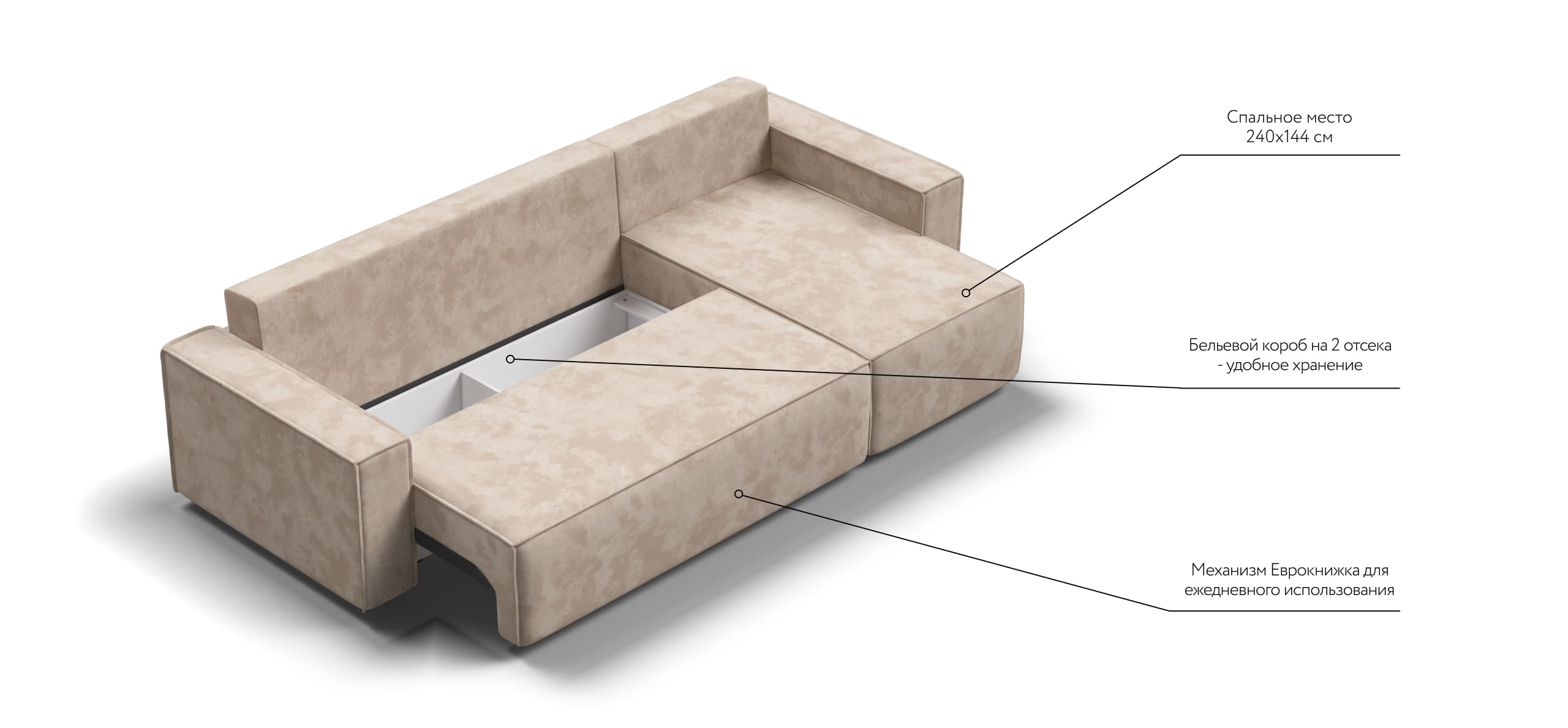 Угловой диван NORD 2.0 с мягкими широкими подлокотниками, строгой симметрией и минималистичной отделкой идеально дополнит современный интерьер в стиле лофт. Днем Вы с комфортом сможете провести время за просмотром любимого фильма, а ночью трансформировать диван в полноценное спальное место, благодаря анатомическому матрасу и надежному механизму еврокнижка. Диван имеет дизайн 360, что позволит расположить его в любой части гостиной. Универсальный угол позволит Вам самостоятельно определить положение угла при сборке.