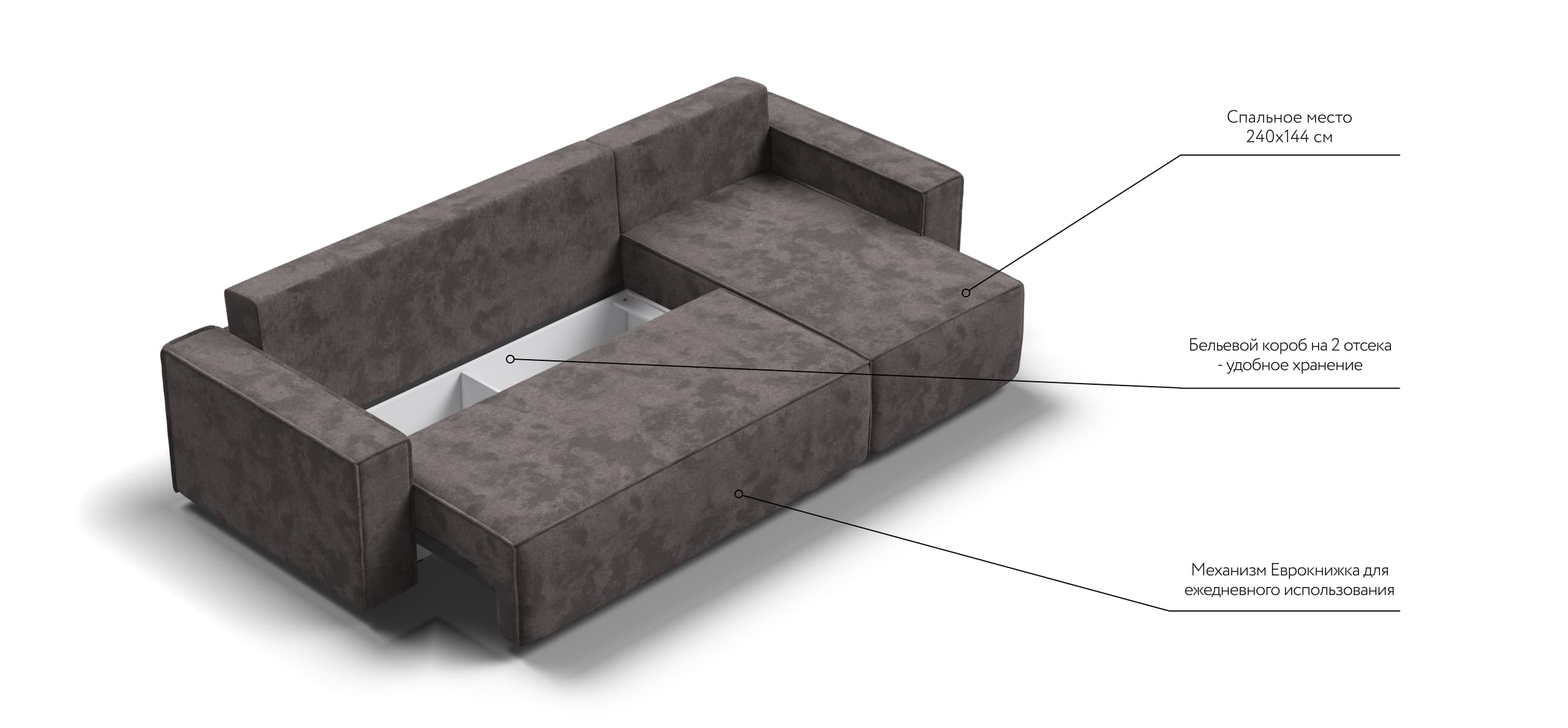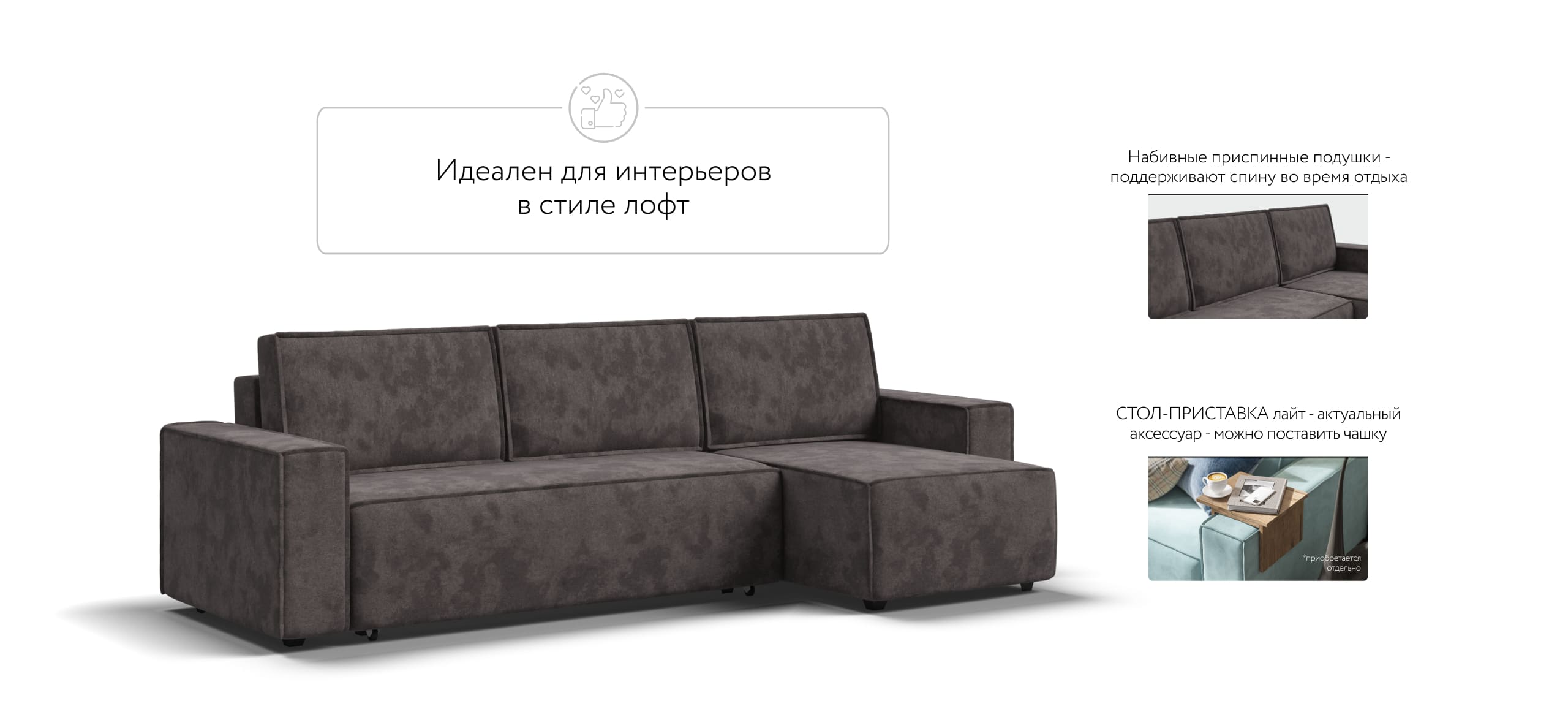 Угловой диван NORD 2.0 с мягкими широкими подлокотниками, строгой симметрией и минималистичной отделкой идеально дополнит современный интерьер в стиле лофт. Днем Вы с комфортом сможете провести время за просмотром любимого фильма, а ночью трансформировать диван в полноценное спальное место, благодаря анатомическому матрасу и надежному механизму еврокнижка. Диван имеет дизайн 360, что позволит расположить его в любой части гостиной. Универсальный угол позволит Вам самостоятельно определить положение угла при сборке.