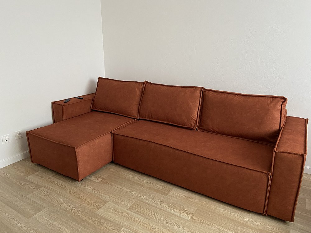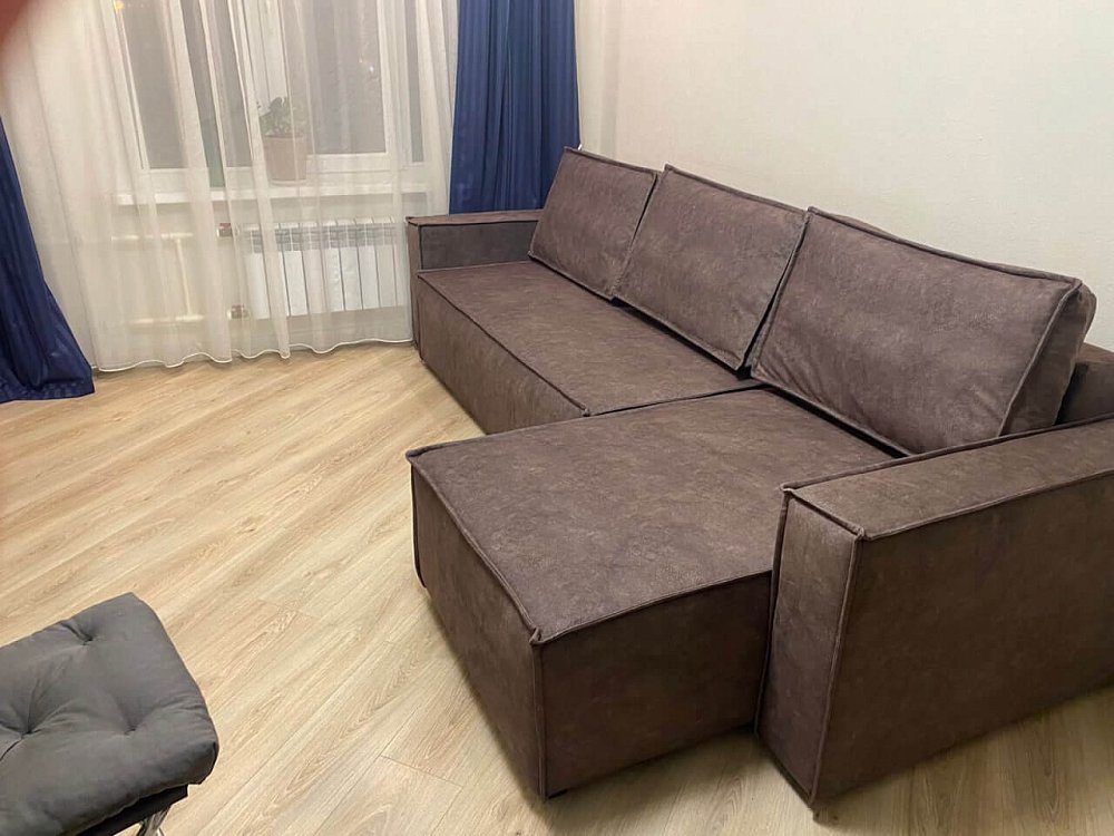 Приятный материал, изготовили, доставили быстро собрали так же. Хороший удобный и стильный диван, за приятную