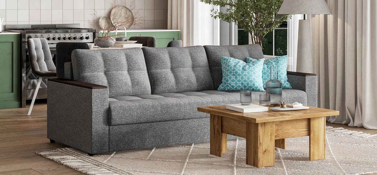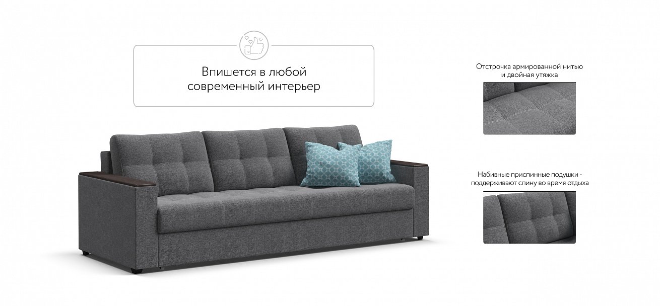 Декоративная строчка армированной нитью и двойная утяжка надолго сохранят внешний вид дивана.