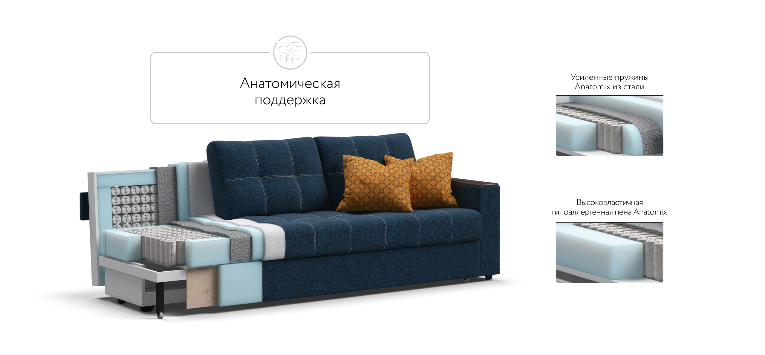 Стильная и элегантная модель дивана Атланта просто создана стать любимым местом для отдыха в Вашей гостиной. Оптимальный для ежедневного использования механизм трансформации еврокнижка, за считанные секунды, без малейших усилий поможет превратить диван в полноценную кровать с высоким и ровным спальным местом.