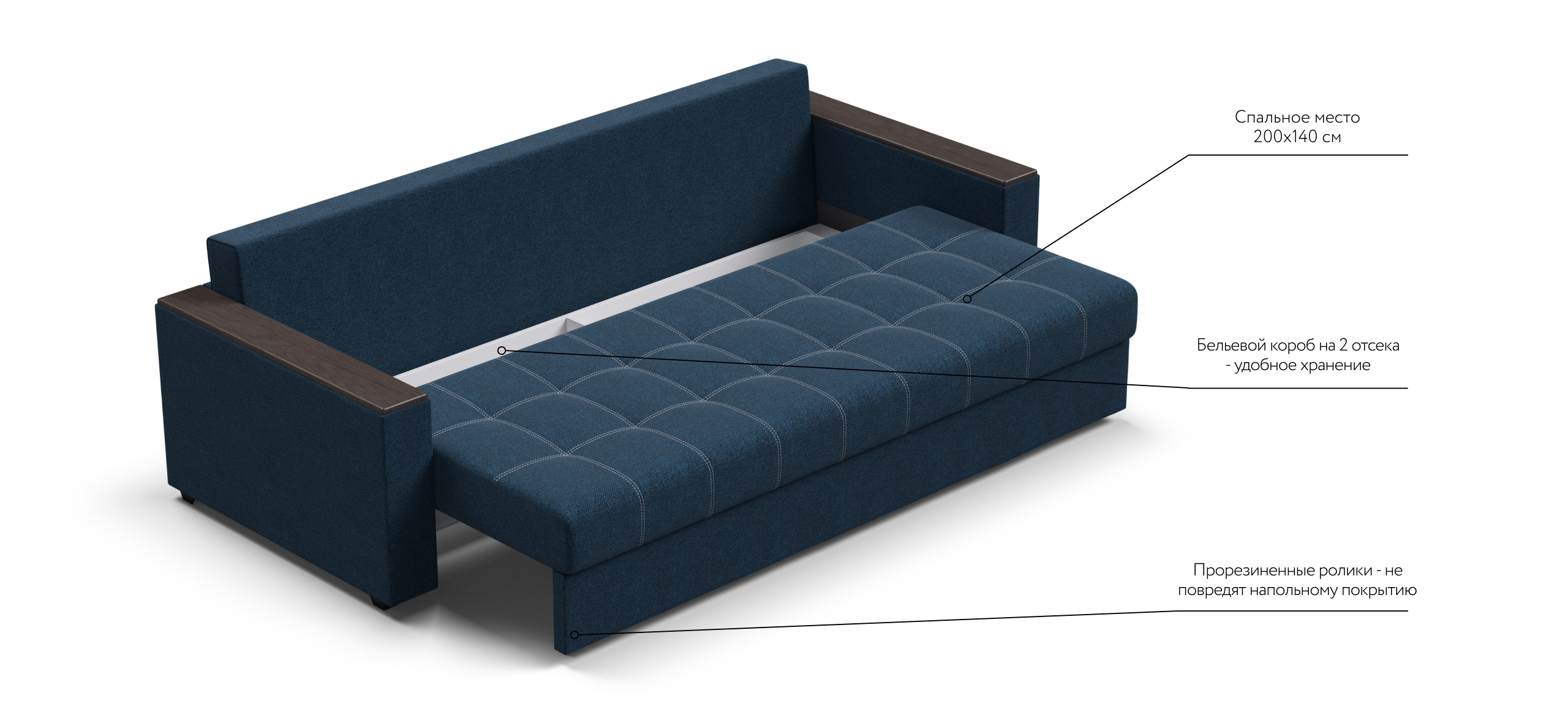 Диван Атланта НПБ 120 рогожка Malmo синий