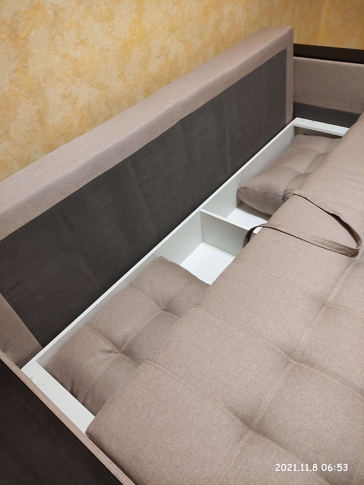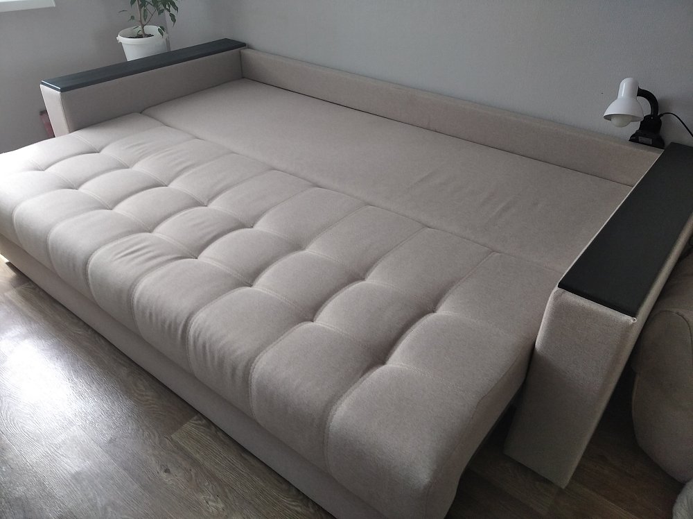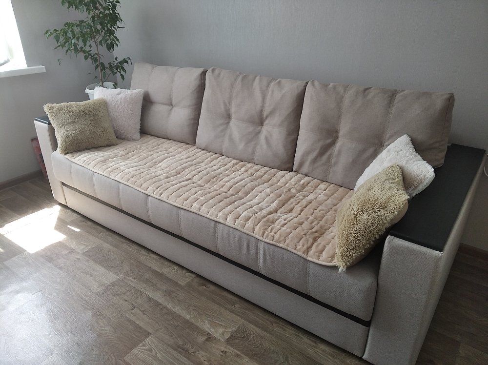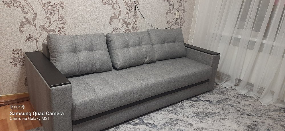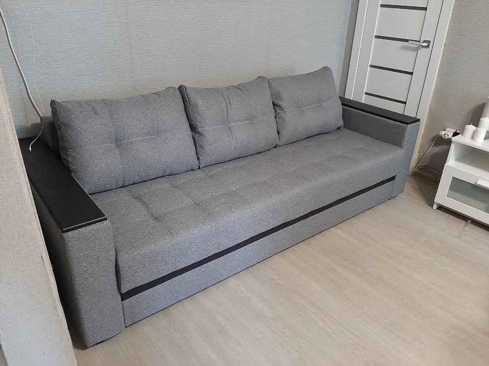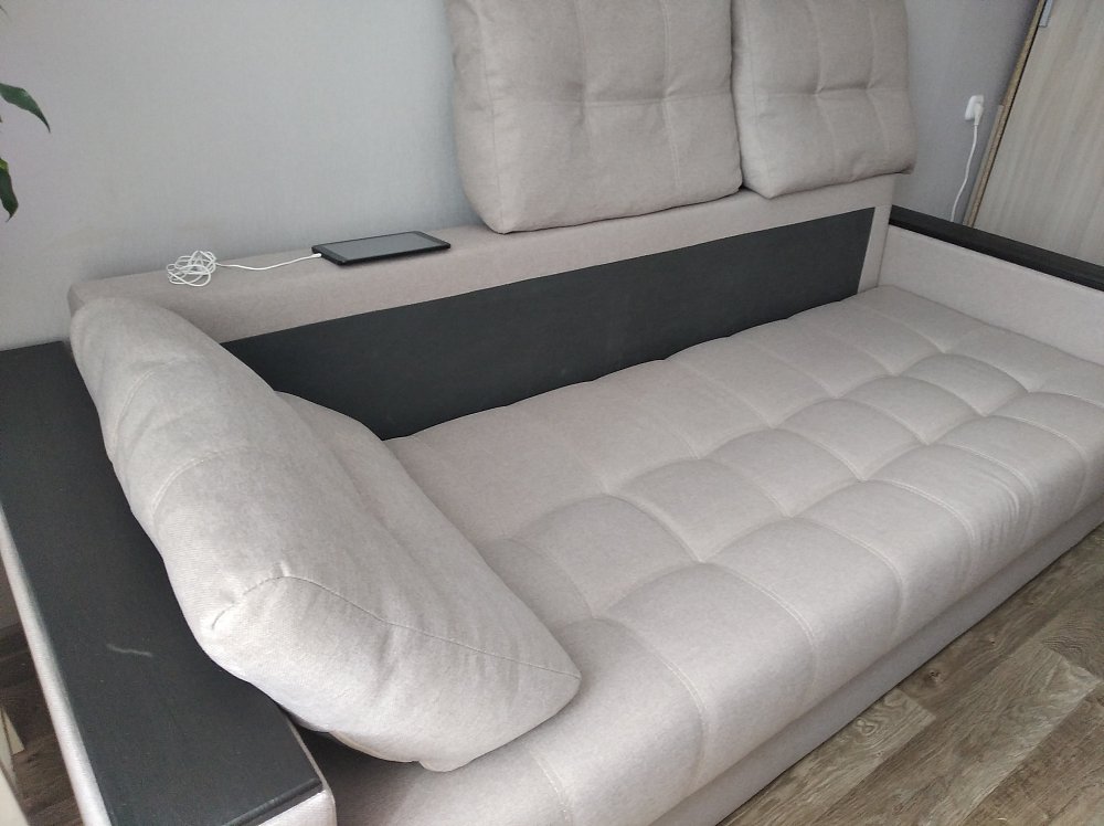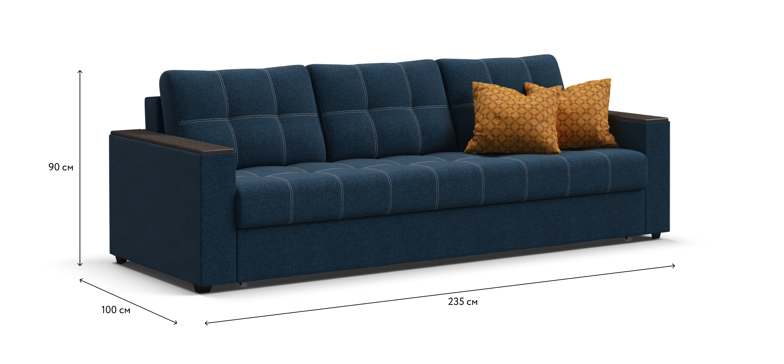 Диван имеет удобные подлокотники из МДФ, которые можно использовать в качестве столика. Элегантная прострочка на посадочной части украшает внешний вид дивана и дает возможность сохранить обивку от растяжения.