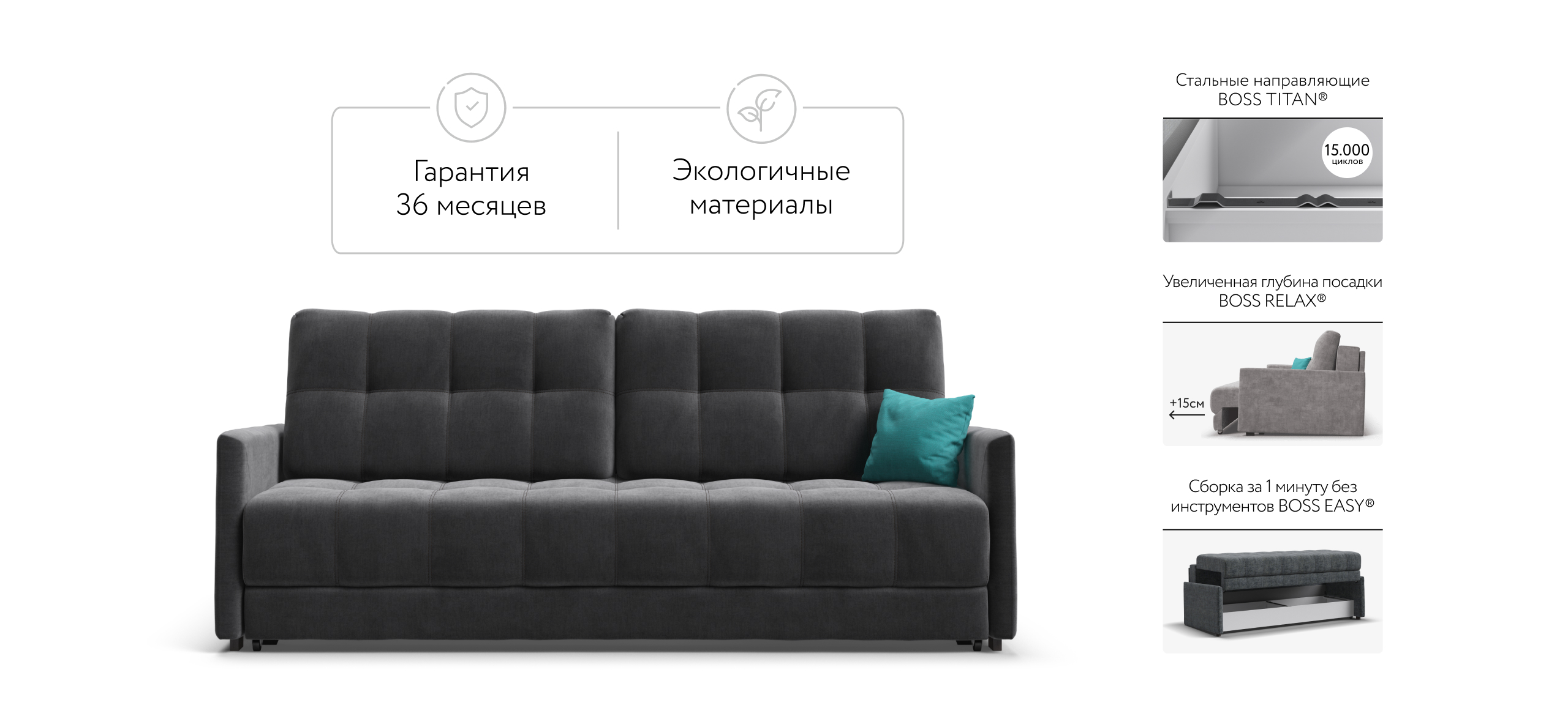 Диван BOSS LOFT - стильный диван для тех, кто ищет не классическое решение для своего интерьера. Тонкие подлокотники придают совершенно другой вид дивану в линейке BOSS.