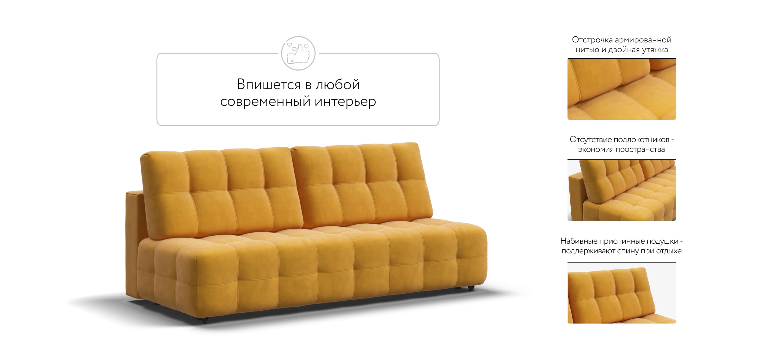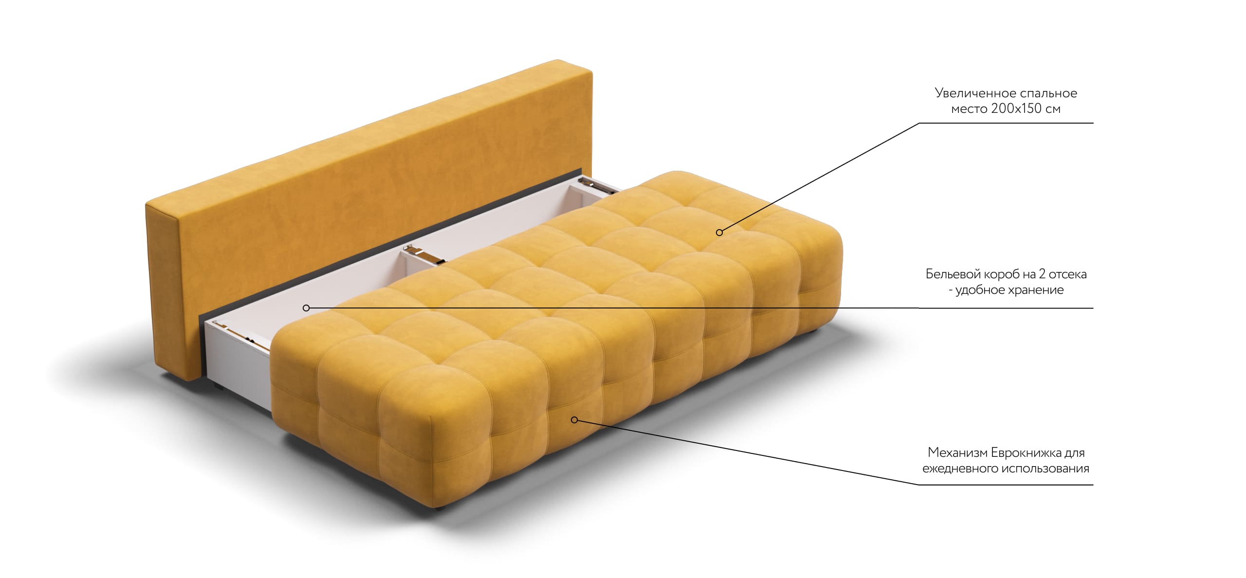 Диван BOSS MINI - отсутствие подлокотников и минималистичный дизайн. Надежный механизм трансформации благодаря стальным направляющим BOSS TITAN. 2 режима раскладки: RELAX позволяет увеличить глубину сиденья на 30% для большего комфорта, а полная раскладка обеспечивает большое и ровное спальное место. Ощутите истинный комфорт у себя дома!