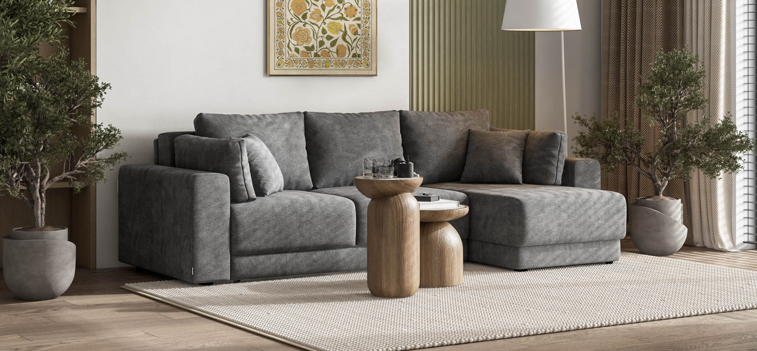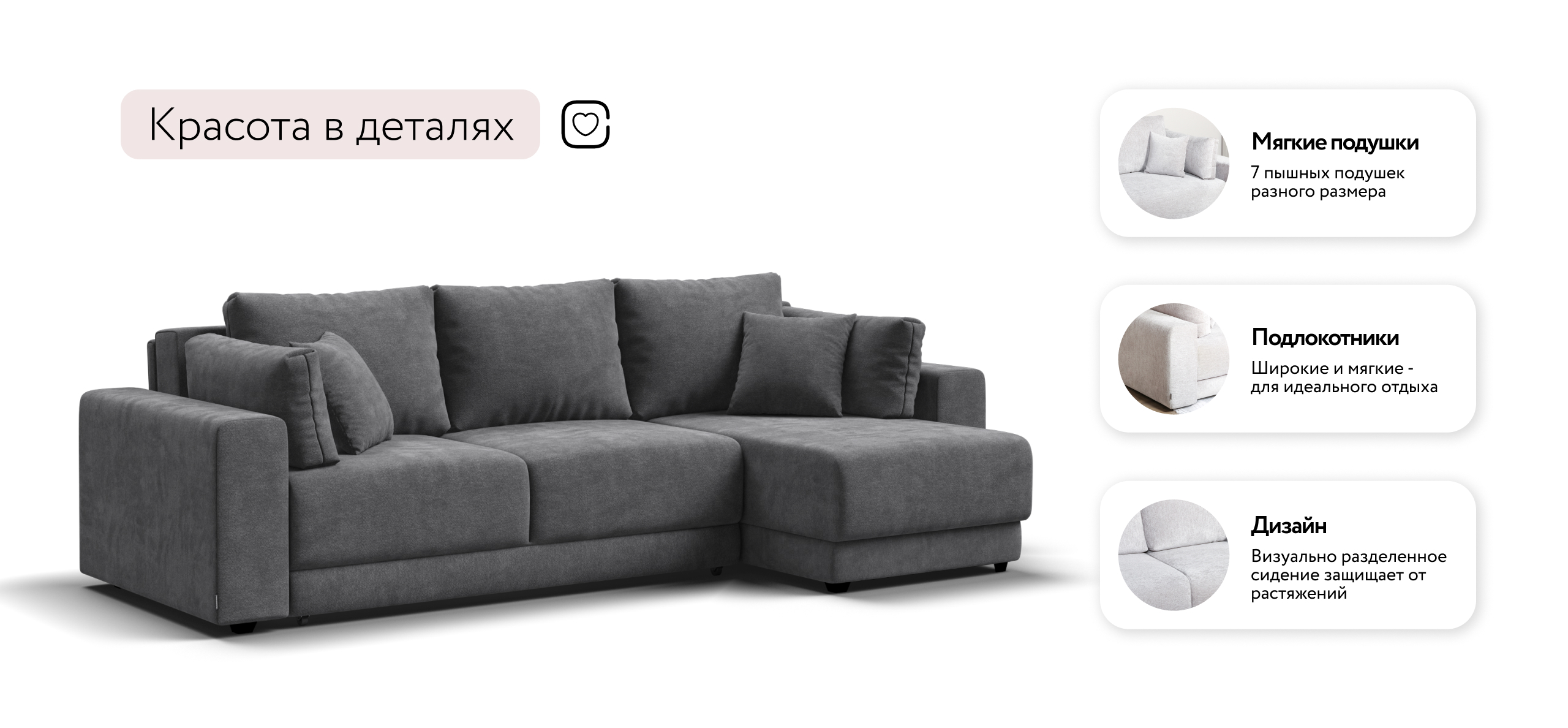 Угловой диван Босс Прайм ХЛ - это сочетание современного дизайна и продуманной эргономики, создающее уютную атмосферу в любом интерьере. Визуально разделённое сиденье, широкие мягкие подлокотники и пышные подушки разного размера обеспечивают не только эстетическую привлекательность, но и максимальный комфорт.