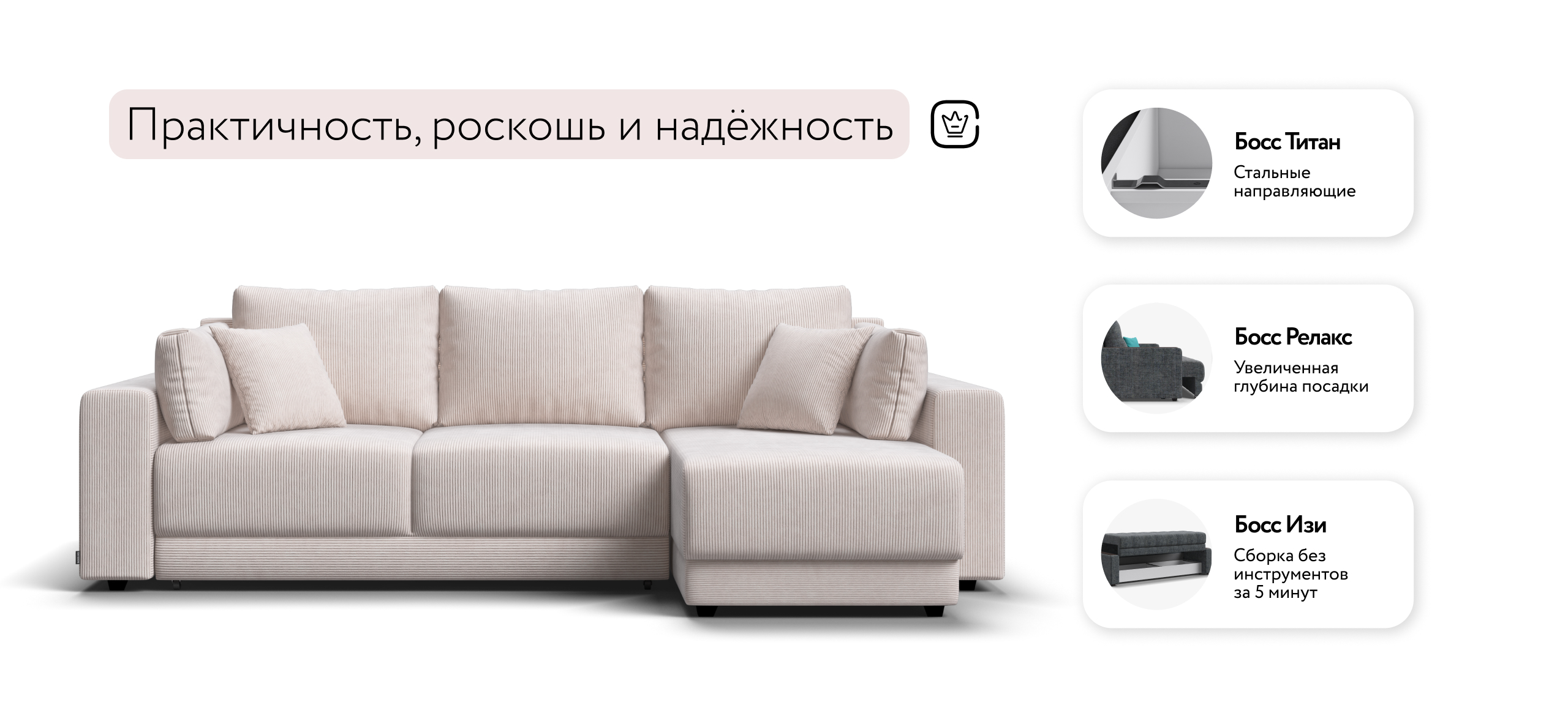 Угловой диван Босс Прайм ХЛ — идеальное решение для тех, кто ценит стиль, надёжность и уют в каждой детали.