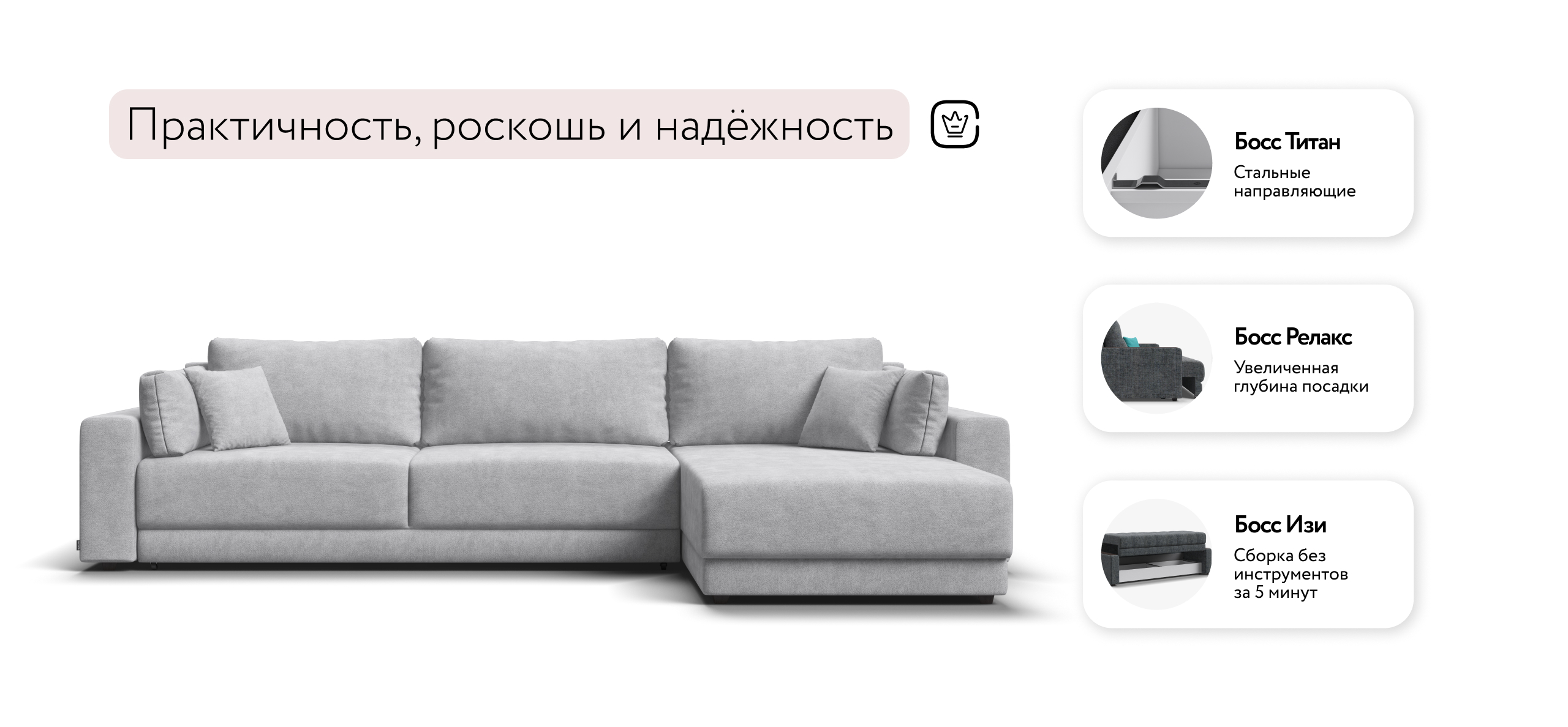 Угловой диван Босс Прайм Макс — идеальное решение для тех, кто ценит стиль, надёжность и уют в каждой детали.