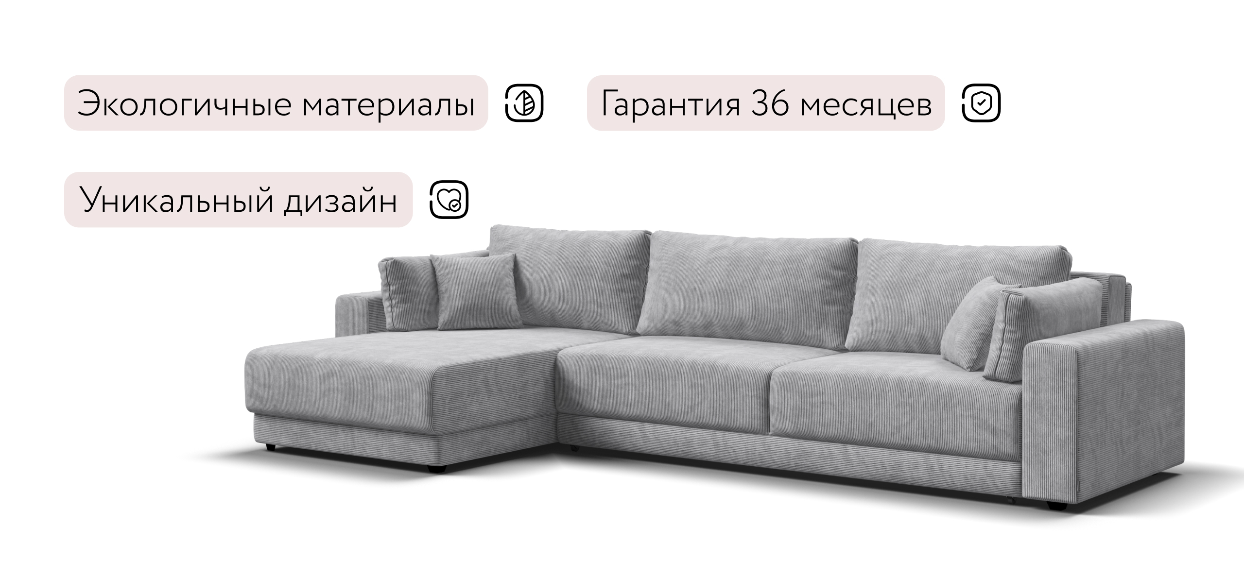 Угловой диван Босс Прайм Макс - это сочетание современного дизайна и продуманной эргономики, создающее уютную атмосферу в любом интерьере. Визуально разделённое сиденье, широкие мягкие подлокотники и пышные подушки разного размера обеспечивают не только эстетическую привлекательность, но и максимальный комфорт.