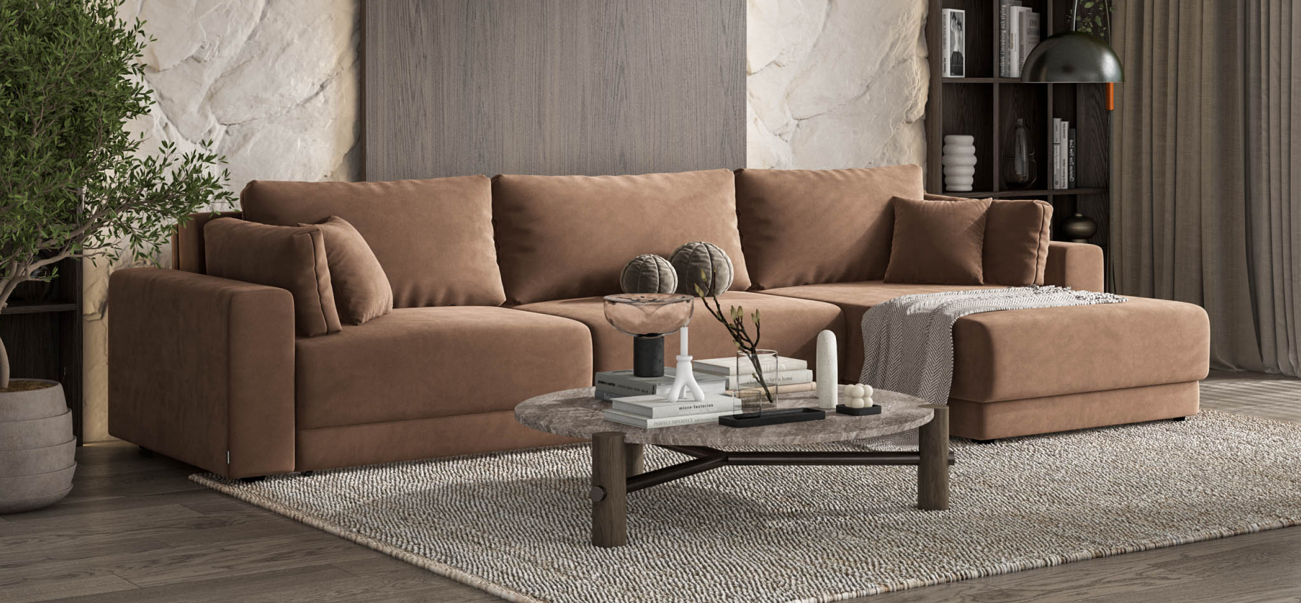 Угловой диван Босс Прайм Макс - это сочетание современного дизайна и продуманной эргономики, создающее уютную атмосферу в любом интерьере. Визуально разделённое сиденье, широкие мягкие подлокотники и пышные подушки разного размера обеспечивают не только эстетическую привлекательность, но и максимальный комфорт.