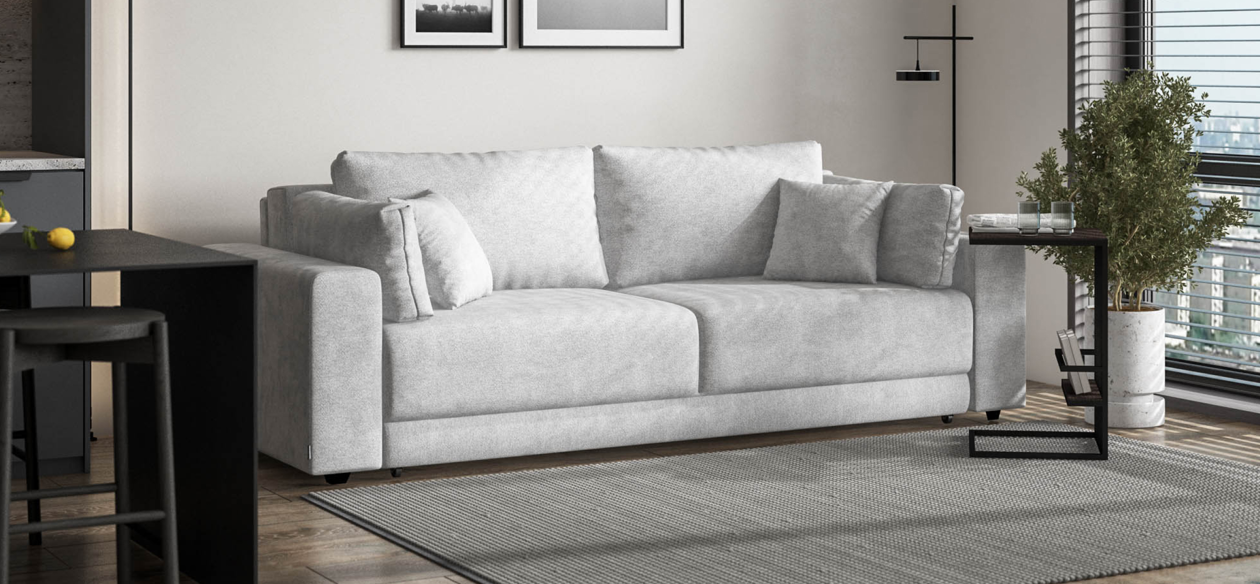 Простой и надежный механизм еврокнижка позволяет ставить диван вплотную к стене