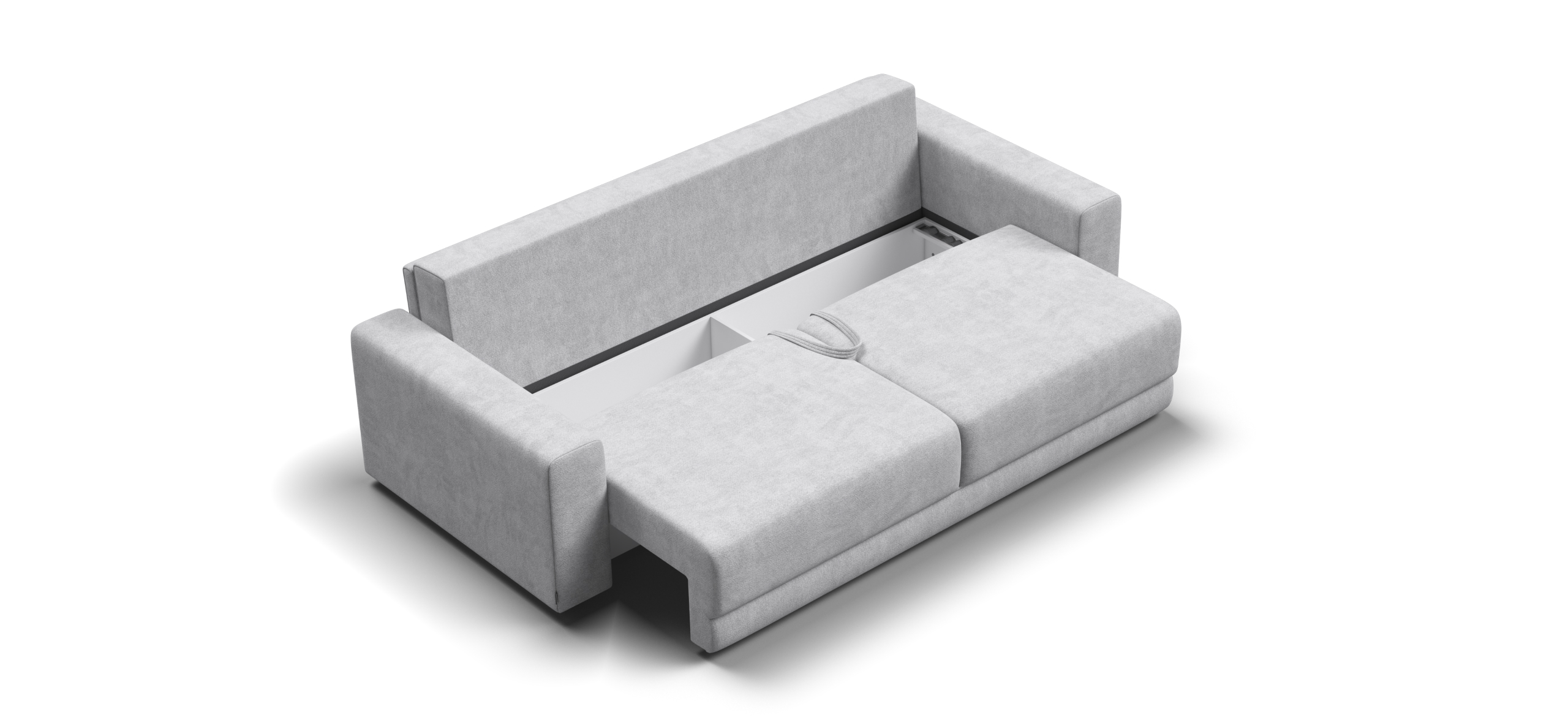 Оснащённый независимым пружинным блоком и высокоэластичной пеной Эластик Фоам с дополнительным слоем периотека, диван гарантирует анатомическую поддержку и комфортный сон. Простой и надёжный механизм трансформации «еврокнижка» позволяет легко преобразовать диван в просторное спальное место.