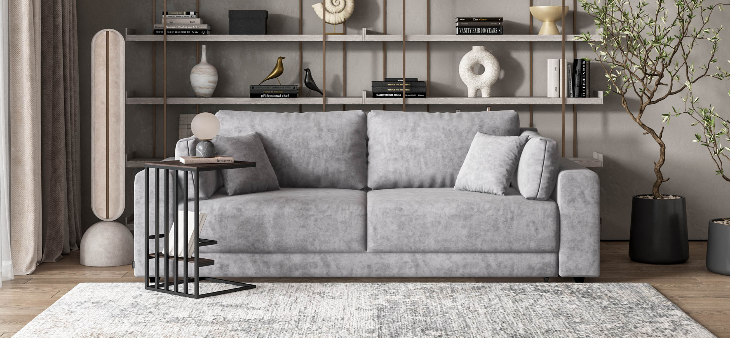 Простой и надежный механизм еврокнижка позволяет ставить диван вплотную к стене