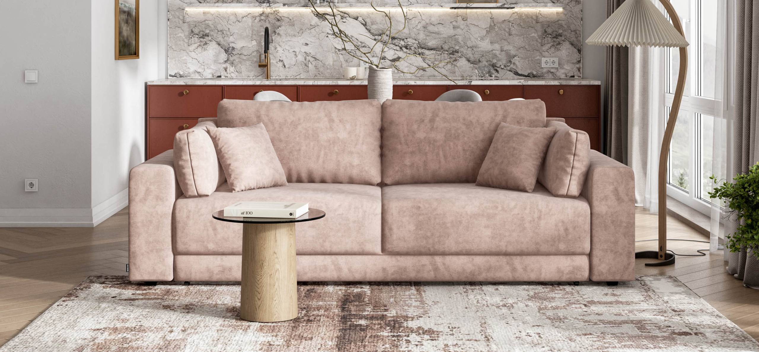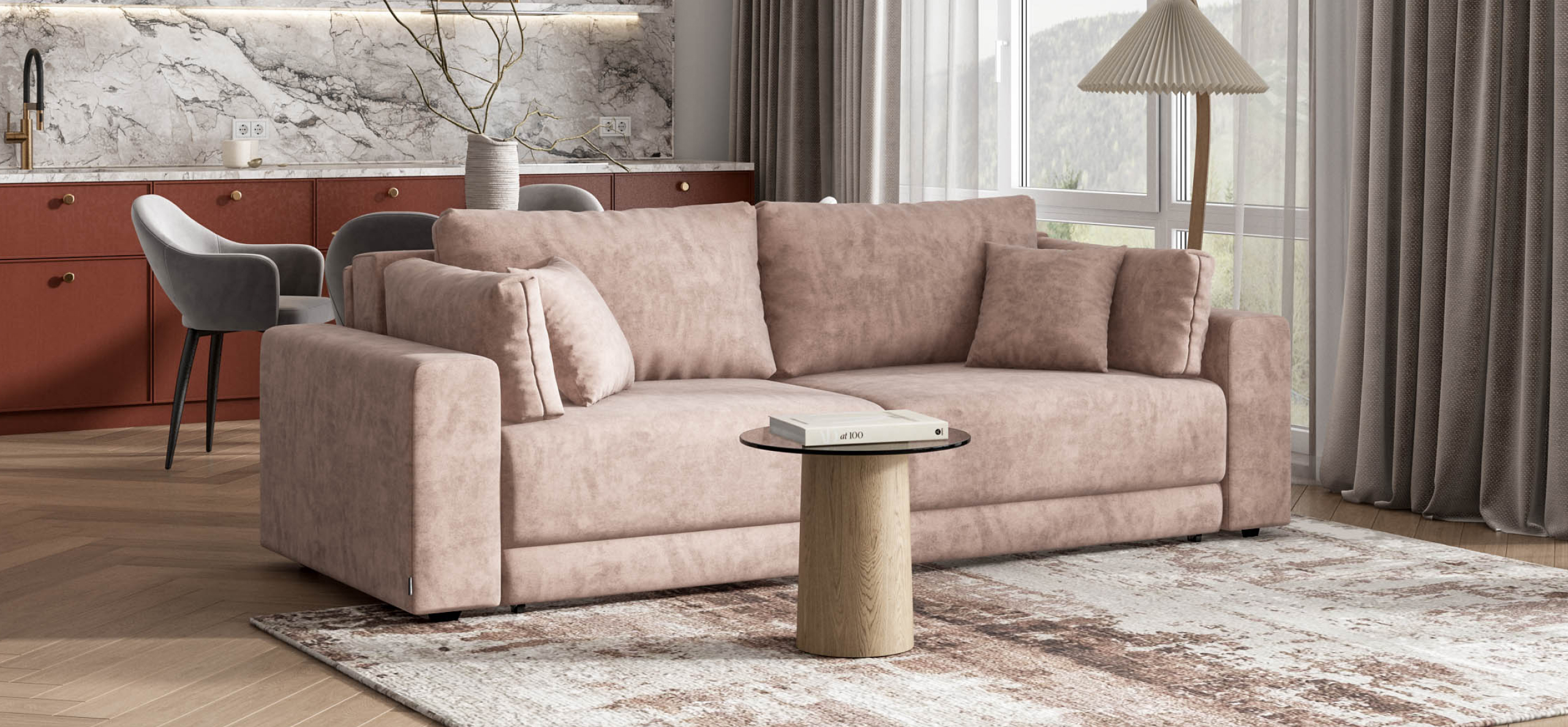 Простой и надежный механизм еврокнижка позволяет ставить диван вплотную к стене