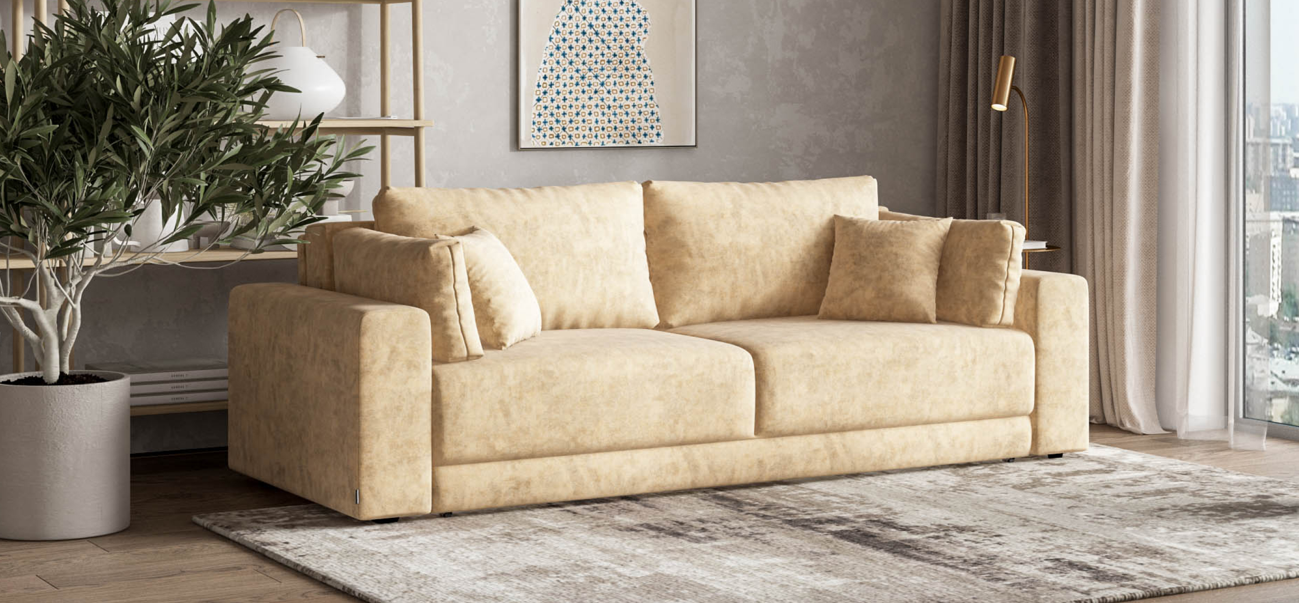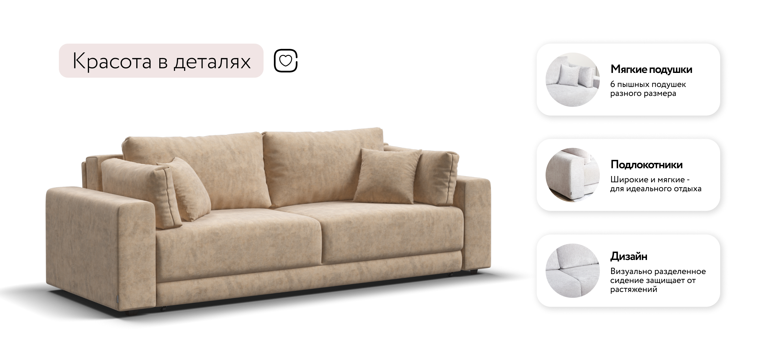 Босс Прайм — это сочетание современного дизайна и продуманной эргономики, создающее уютную атмосферу в любом интерьере. Визуально разделённое сиденье, широкие мягкие подлокотники и пышные подушки разного размера обеспечивают не только эстетическую привлекательность, но и максимальный комфорт.
