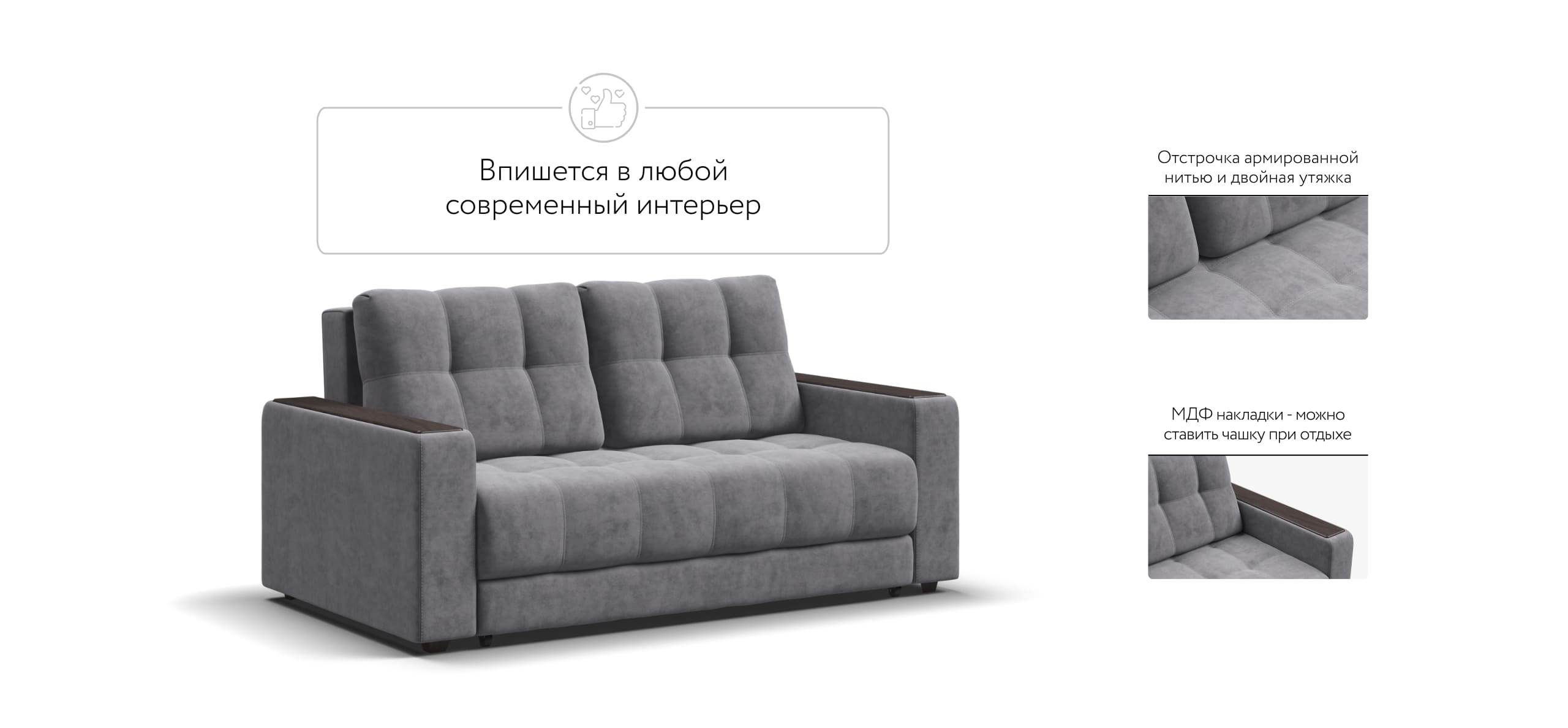 BOSS Compact- диван с механизмом «EASY ROLL», который подойдет для любой современной квартиры. Компактный размер дивана сочетается с оптимальным спальным местом, на котором могут с комфортом разместиться 2 человека. Большой выбор популярных цветов позволит подобрать диван в любой интерьер.